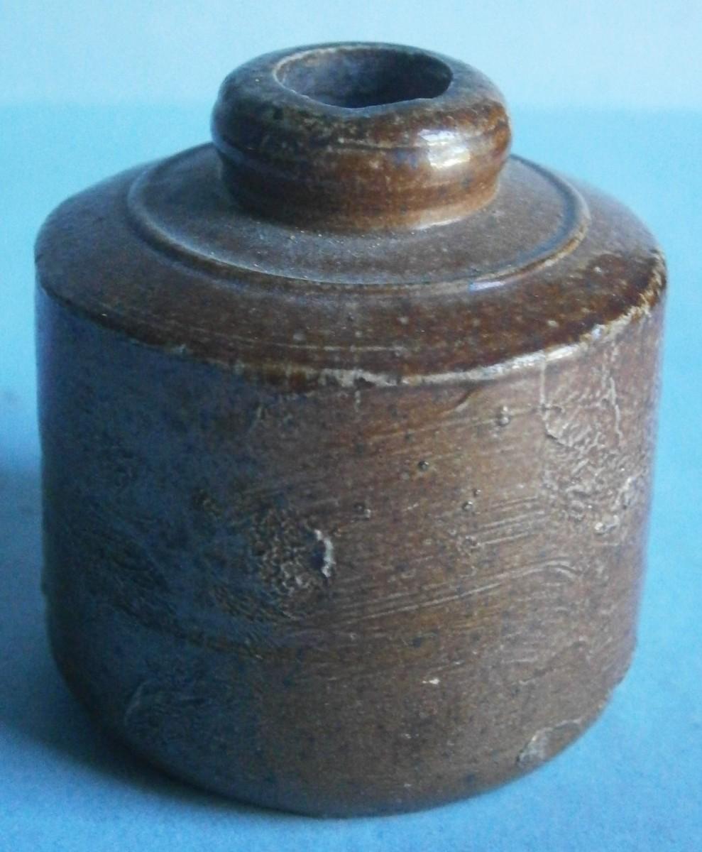 19th Century Stoneware Ink Bottle, 2 in. tall, glazed stoneware potter.