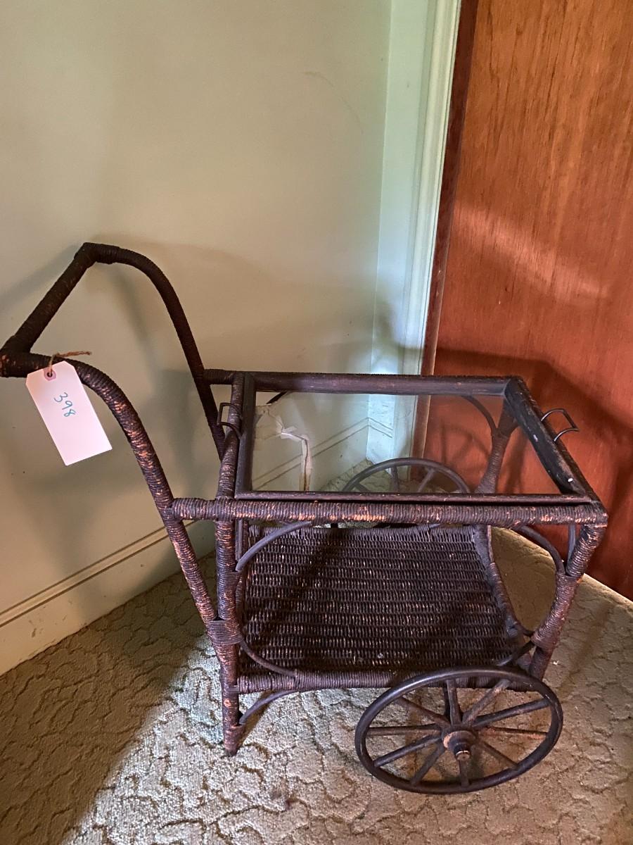 LOT 398 19th Century Tea/ Beverage Cart w/ Removable Tray, Tray has Broken Glass