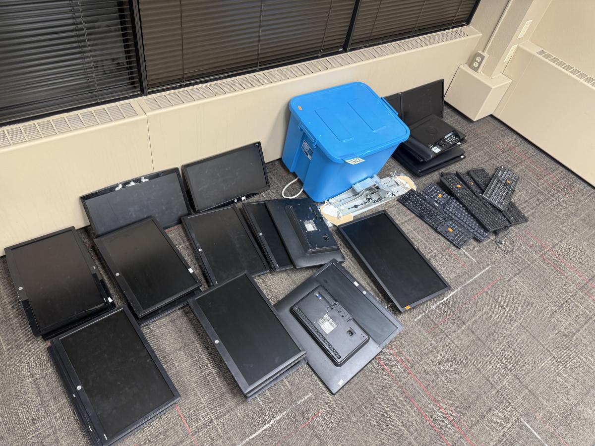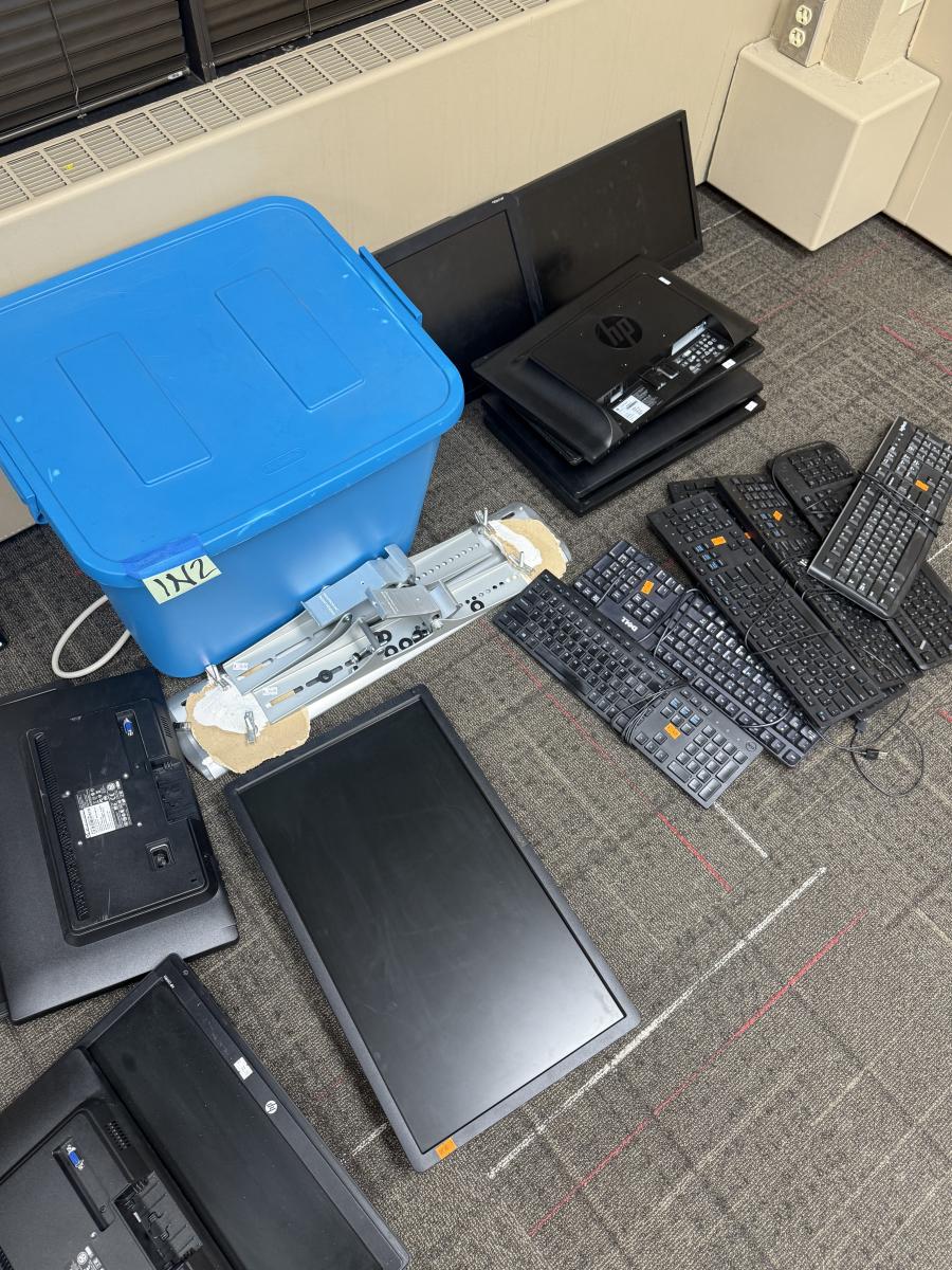 1N2-monitors, keyboards, empty plastic tote