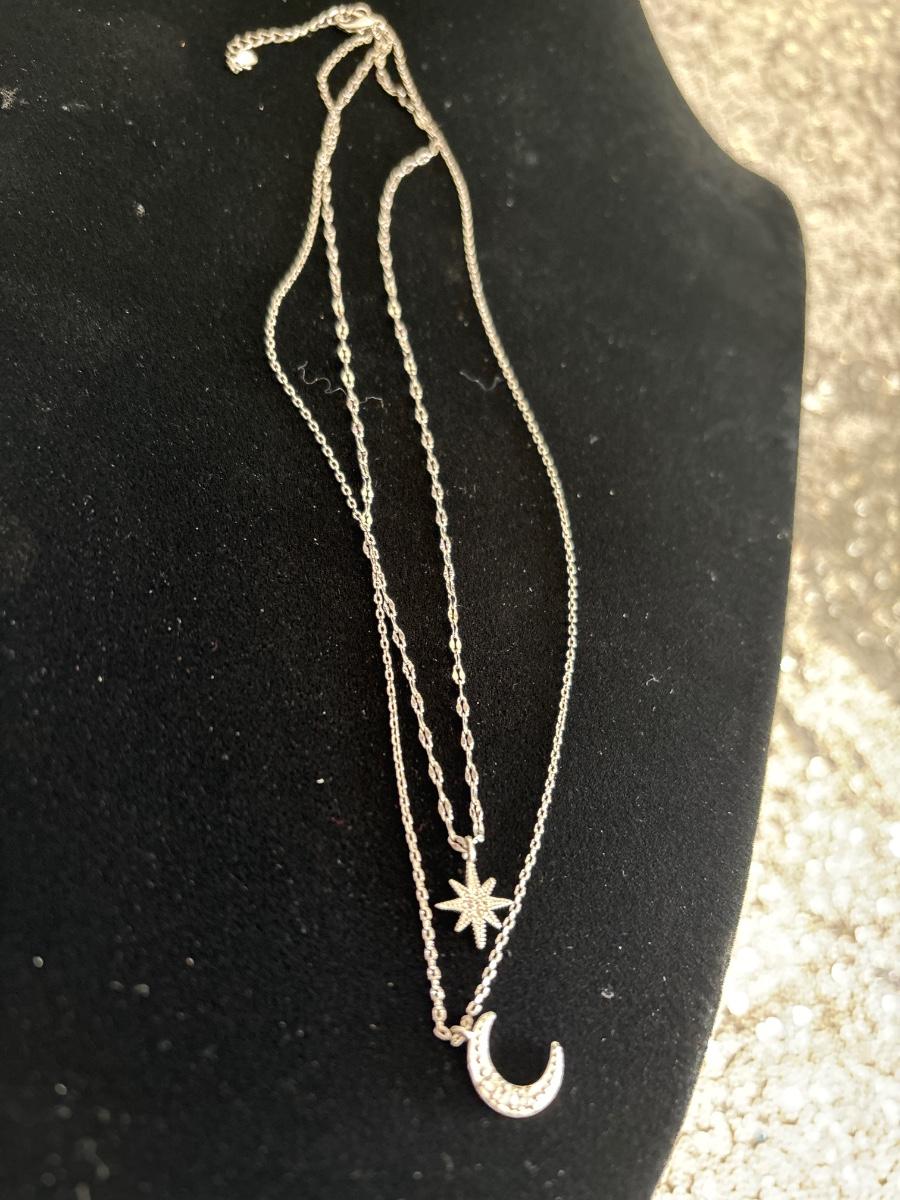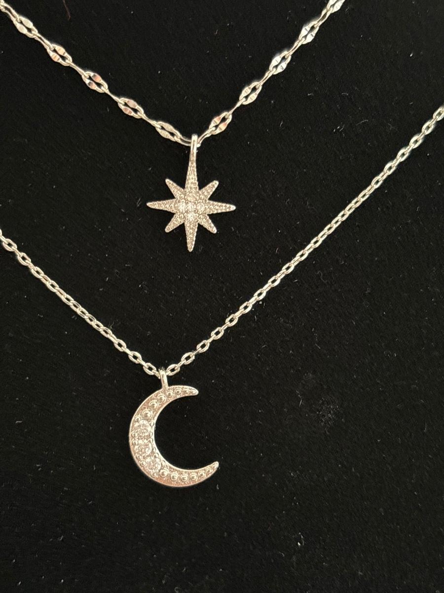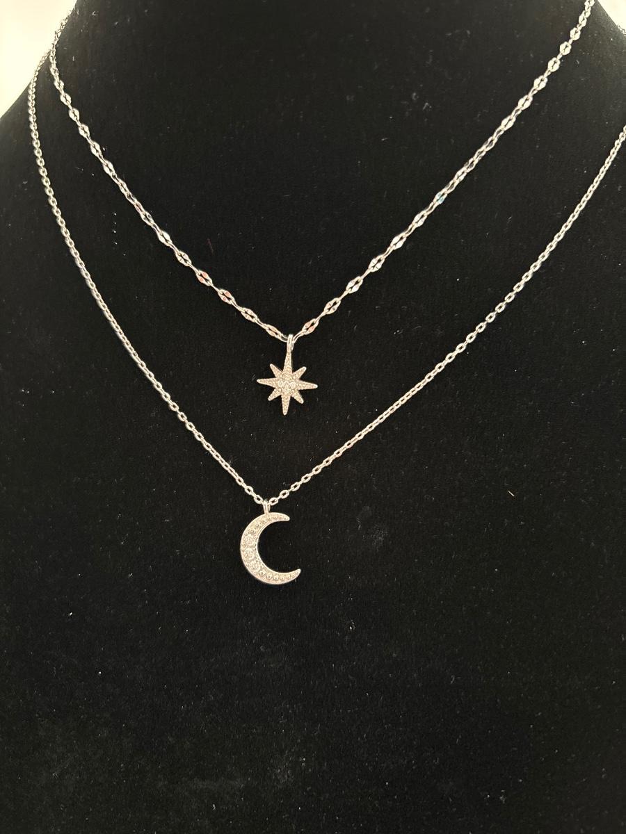1pc 925 sterling silver moon and star double layer choker necklace