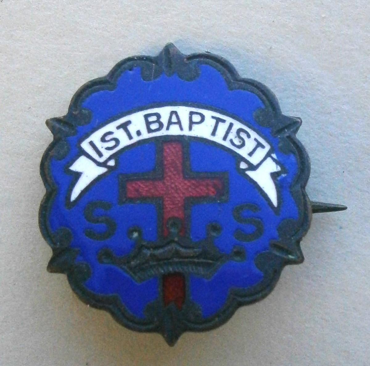 "1ST BAPTIST" Church Religious Pin, enamel on Metal, 5/8 in. tall,