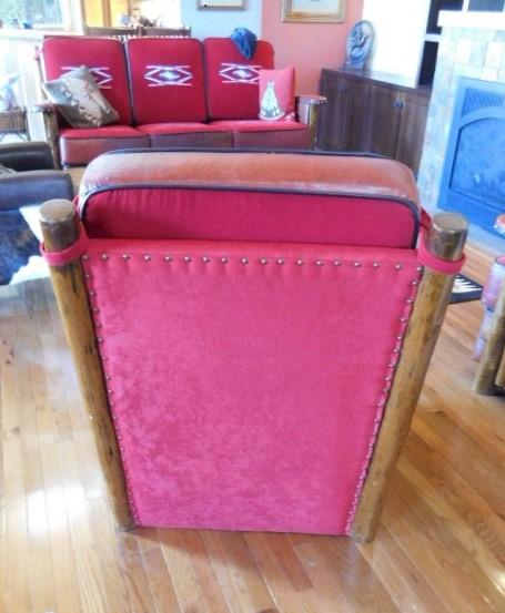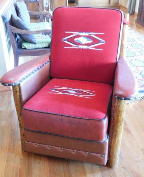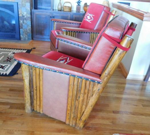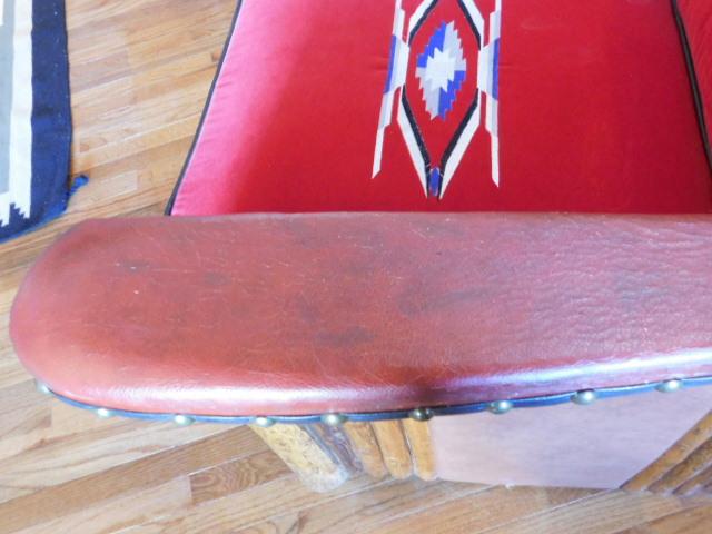1st Choice of 2: Molesworth Style Cowboy Life Traditional Design Club Chair 39" has some age and use wear. Leather has dry cracks and delamination on exterior edge of cushions against the wood. This is a unique style of furniture that is rare to find and extremely expensive when pieces are available. Reproductions are all custom to order and these pieces are believed to have been original prototypes for Harrah's Cherokee Casino