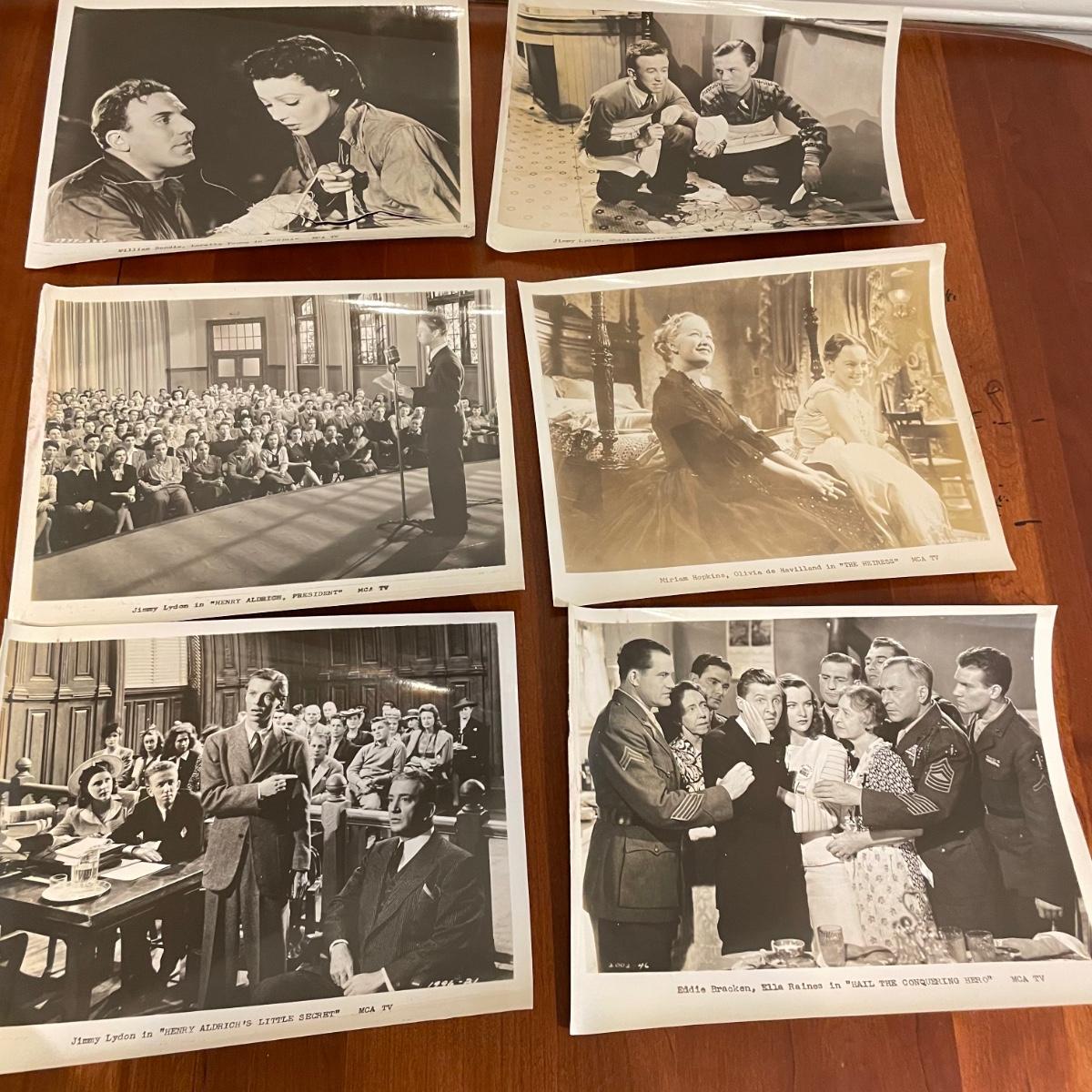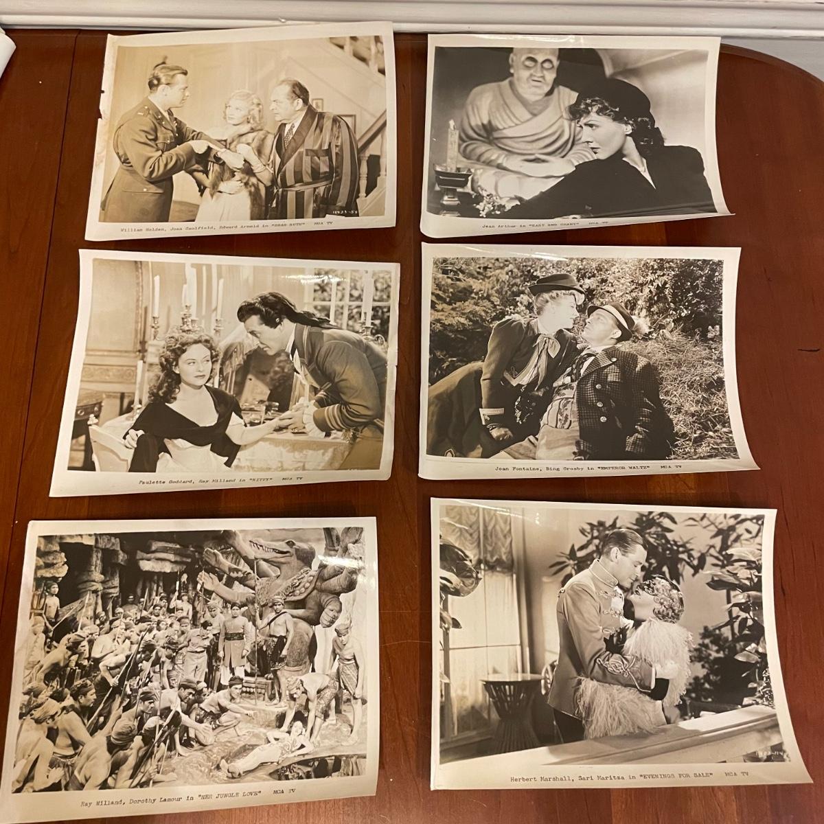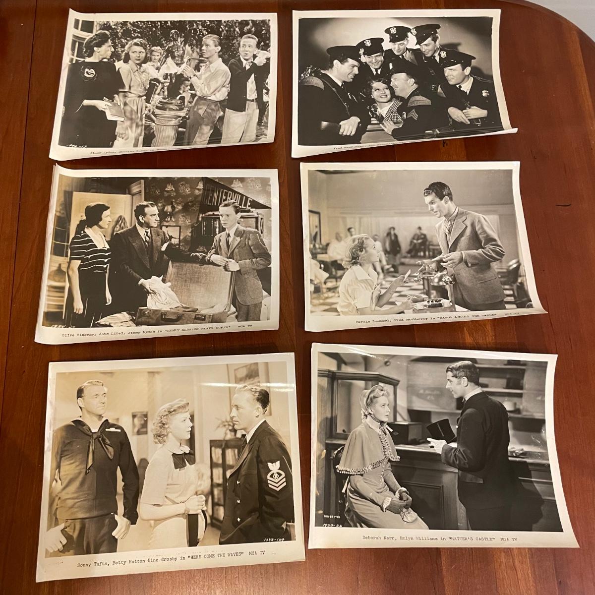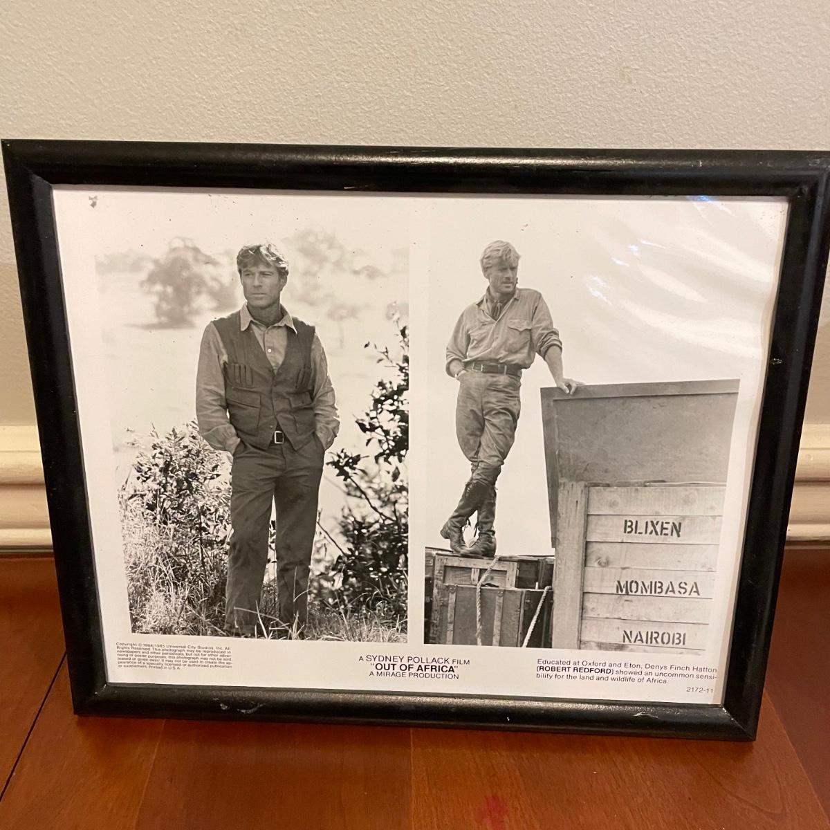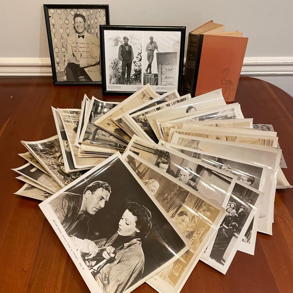 Over sixty photos of classic scenes from classic movies the are promo prints from MCA TV. There is also a first edition of Out of Africa alongside a panel-less framed photo of Robert Redford and colored picture book. Two more joys in the lot are a waxy paper advertisement and a signed & framed photograph of Rudy Vallee. Pictures measure 8” x 10“. See images. Shipping available.