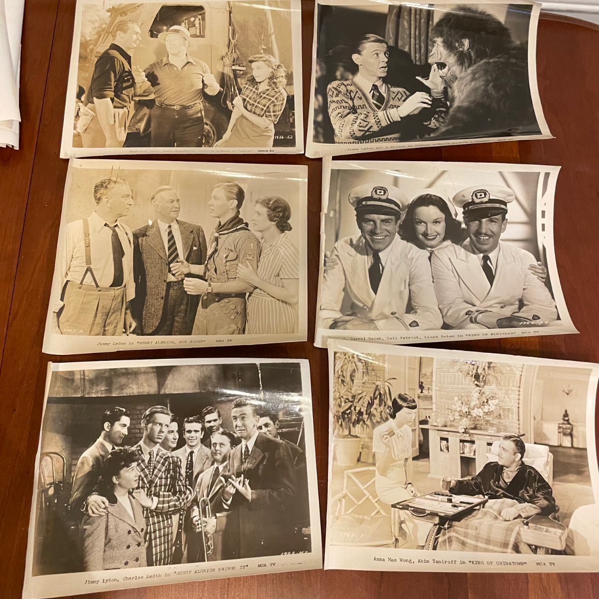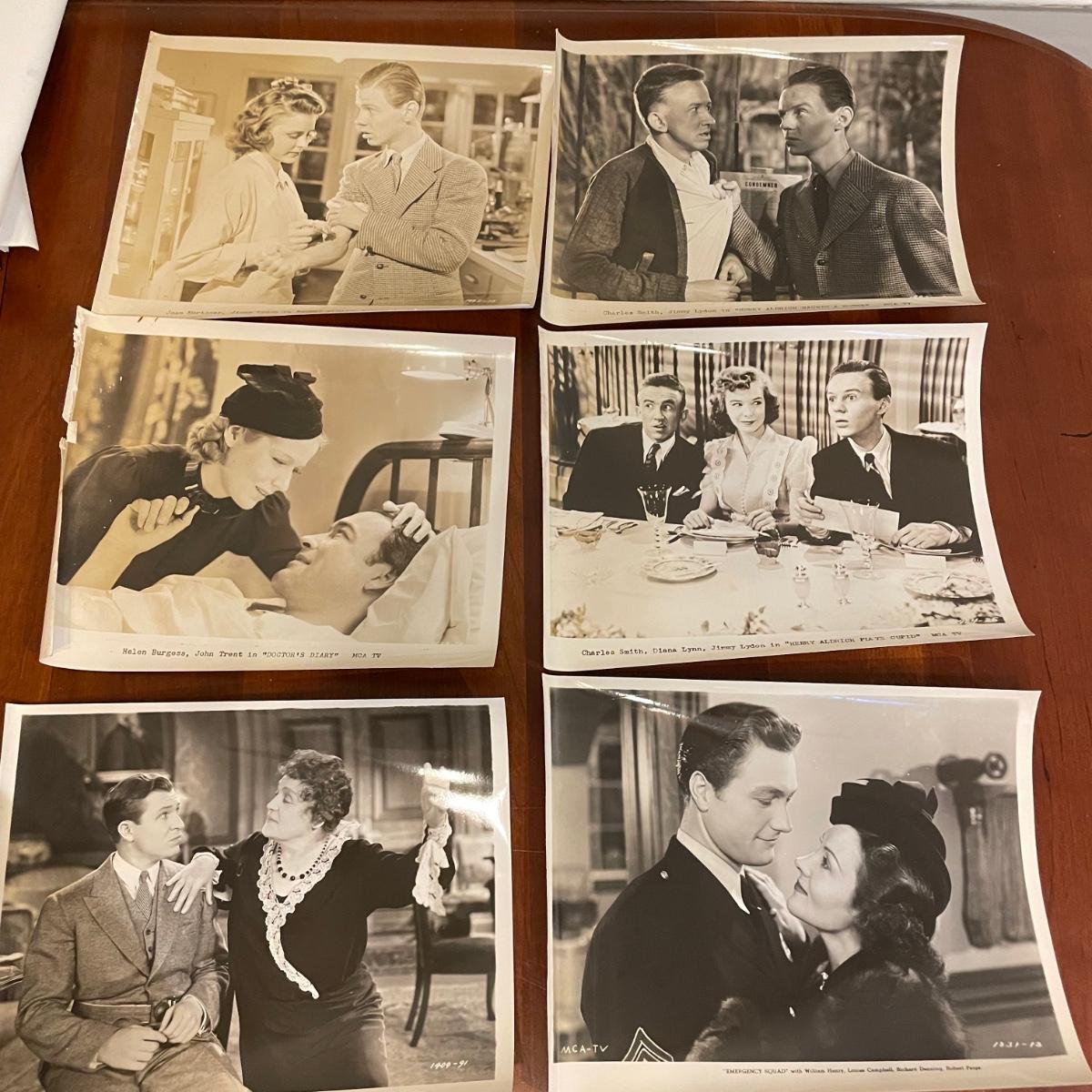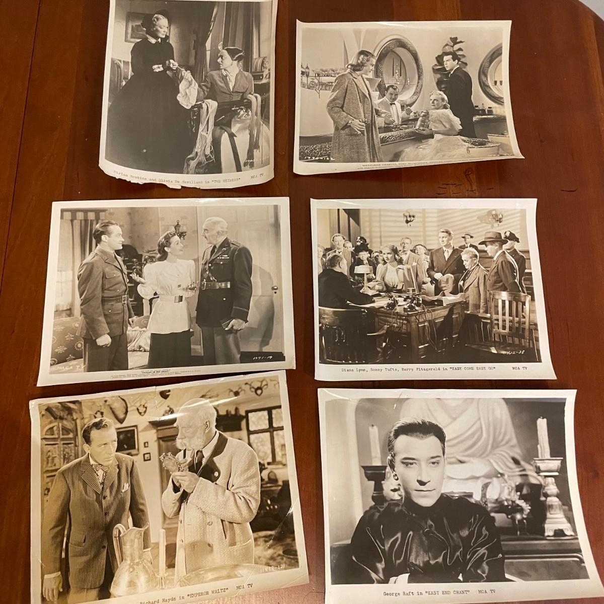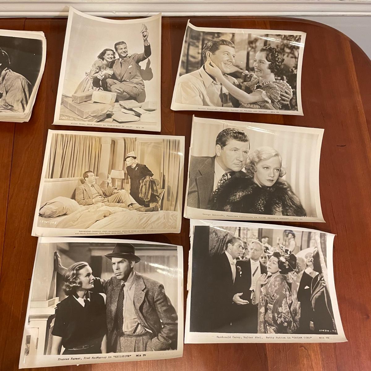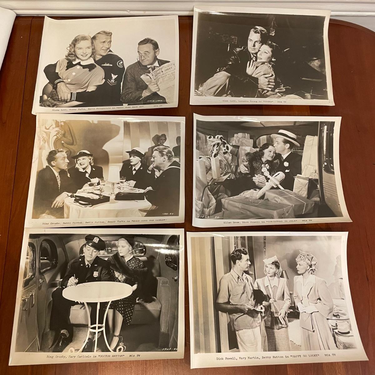Over sixty photos of classic scenes from classic movies the are promo prints from MCA TV. There is also a first edition of Out of Africa alongside a panel-less framed photo of Robert Redford and colored picture book. Two more joys in the lot are a waxy paper advertisement and a signed & framed photograph of Rudy Vallee. Pictures measure 8” x 10“. See images. Shipping available.