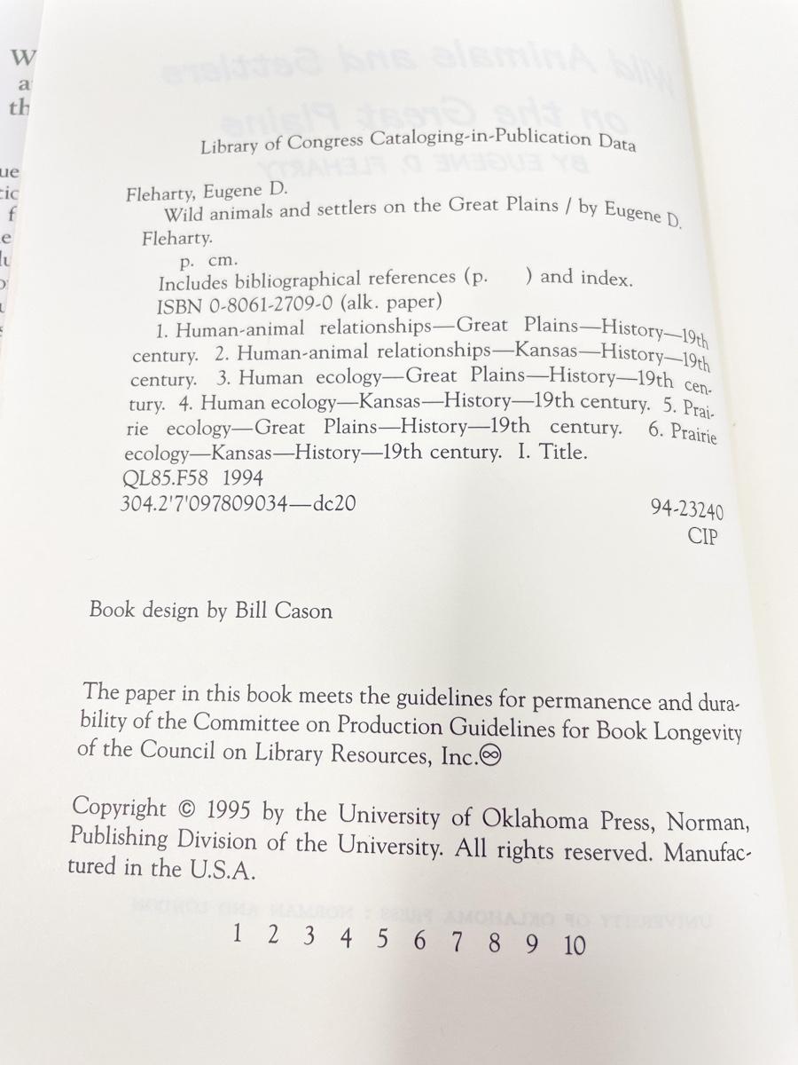 “WILD ANIMALS AND SETTLERS ON THE GREAT PLAINS “ HARDBACK BOOK