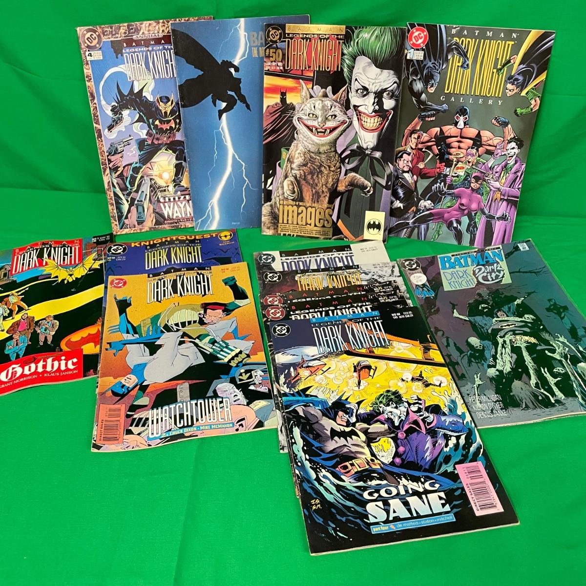 First printing of Batman: The Dark Knight Returns plus 1996’s #1 Batman Dark Knight Gallery and ten issues of Batman: Legends of the Dark Knight comics from 1993-1995 issues spanning 4-77 including #50 with gold foil cover. Lastly, Batman Dark Knight Darn City issue 453. Items are sold as-is. No returns or refunds. Please bid accordingly.