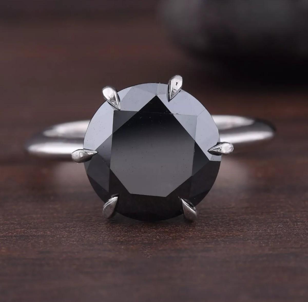 2 .00 Ct Natural Round Cut Black Diamond Solitaire Silver Ring with Insurance Appraisal Value