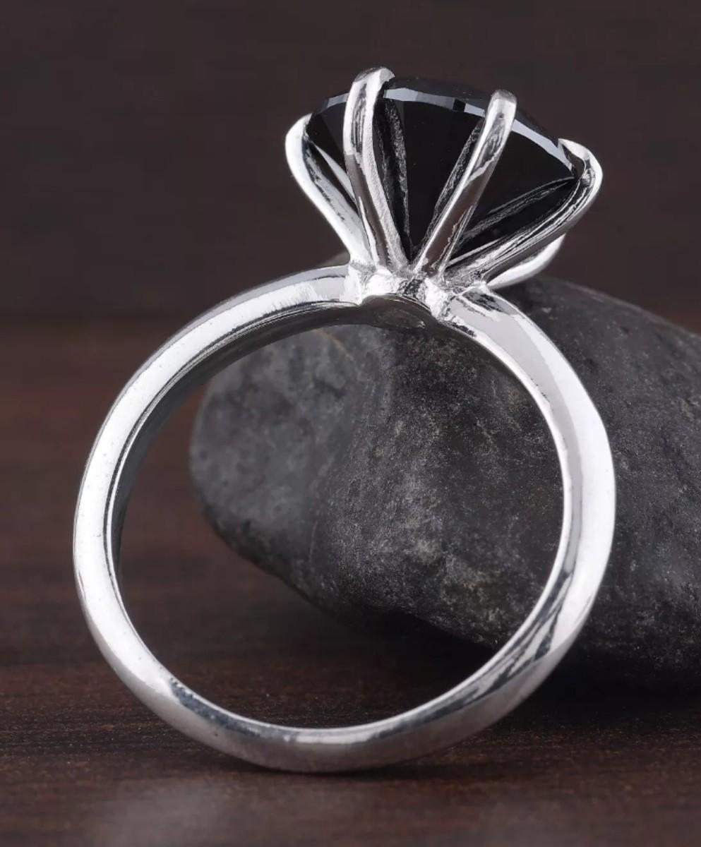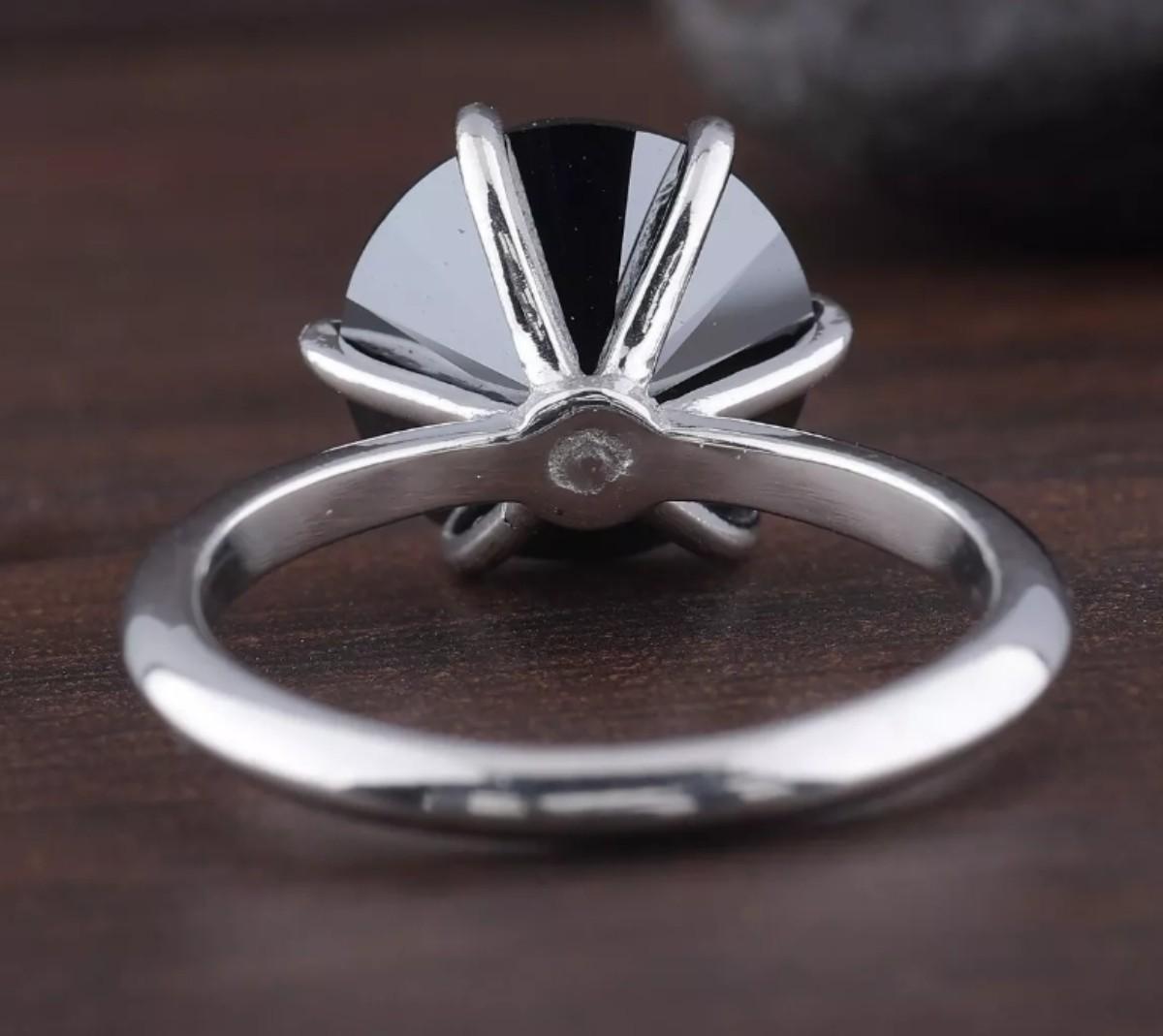 2 .00 Ct Natural Round Cut Black Diamond Solitaire Silver Ring