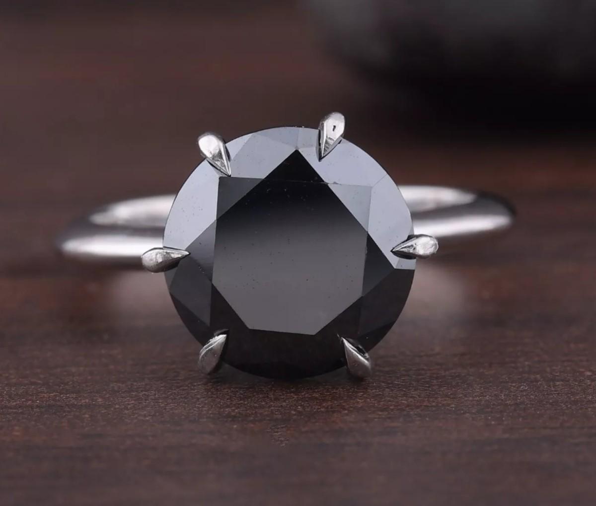 2 .00 Ct Natural Round Cut Black Diamond Solitaire Silver Ring