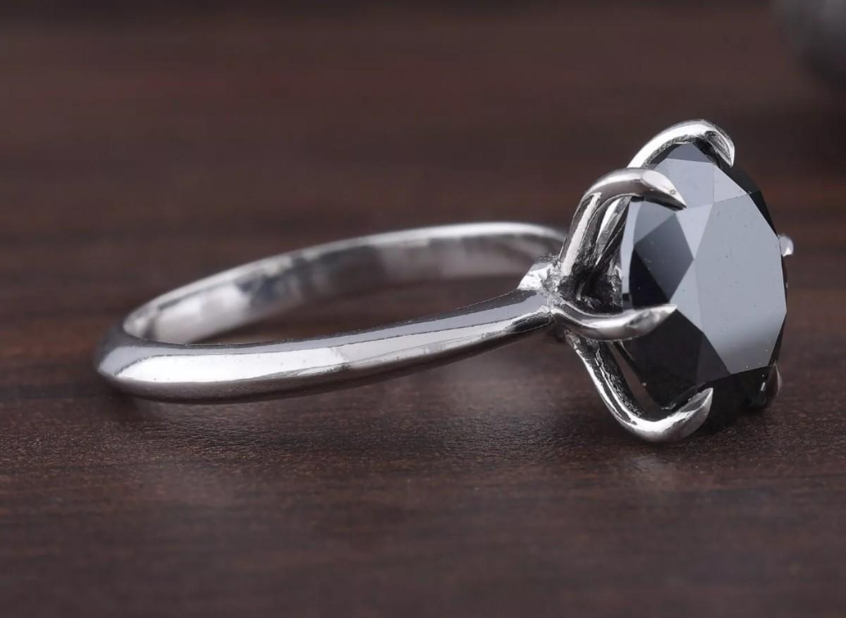 2 .00 Ct Natural Round Cut Black Diamond Solitaire Silver Ring