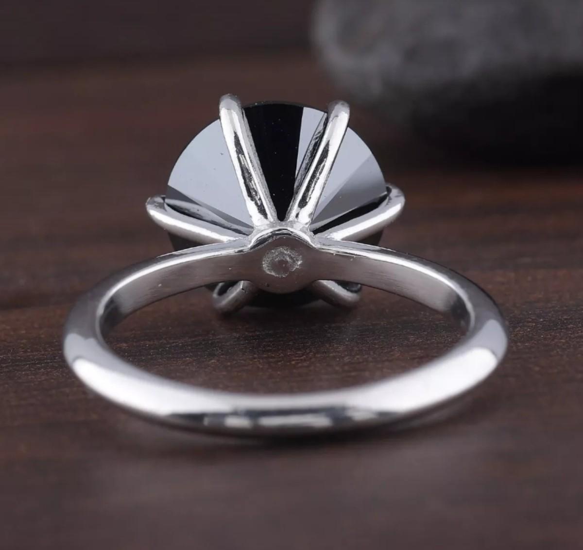 2 .00 Ct Natural Round Cut Black Diamond Solitaire Silver Ring