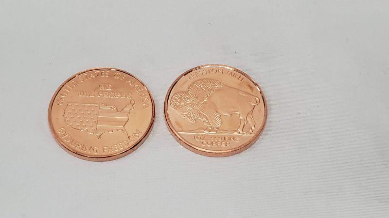 2- 1 oz .999 Fine Copper, Preston Mint, Buffalo & We the People - New