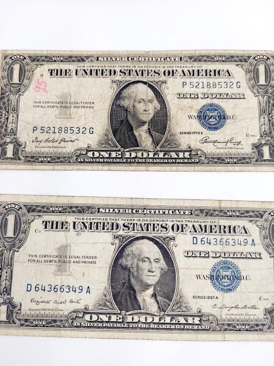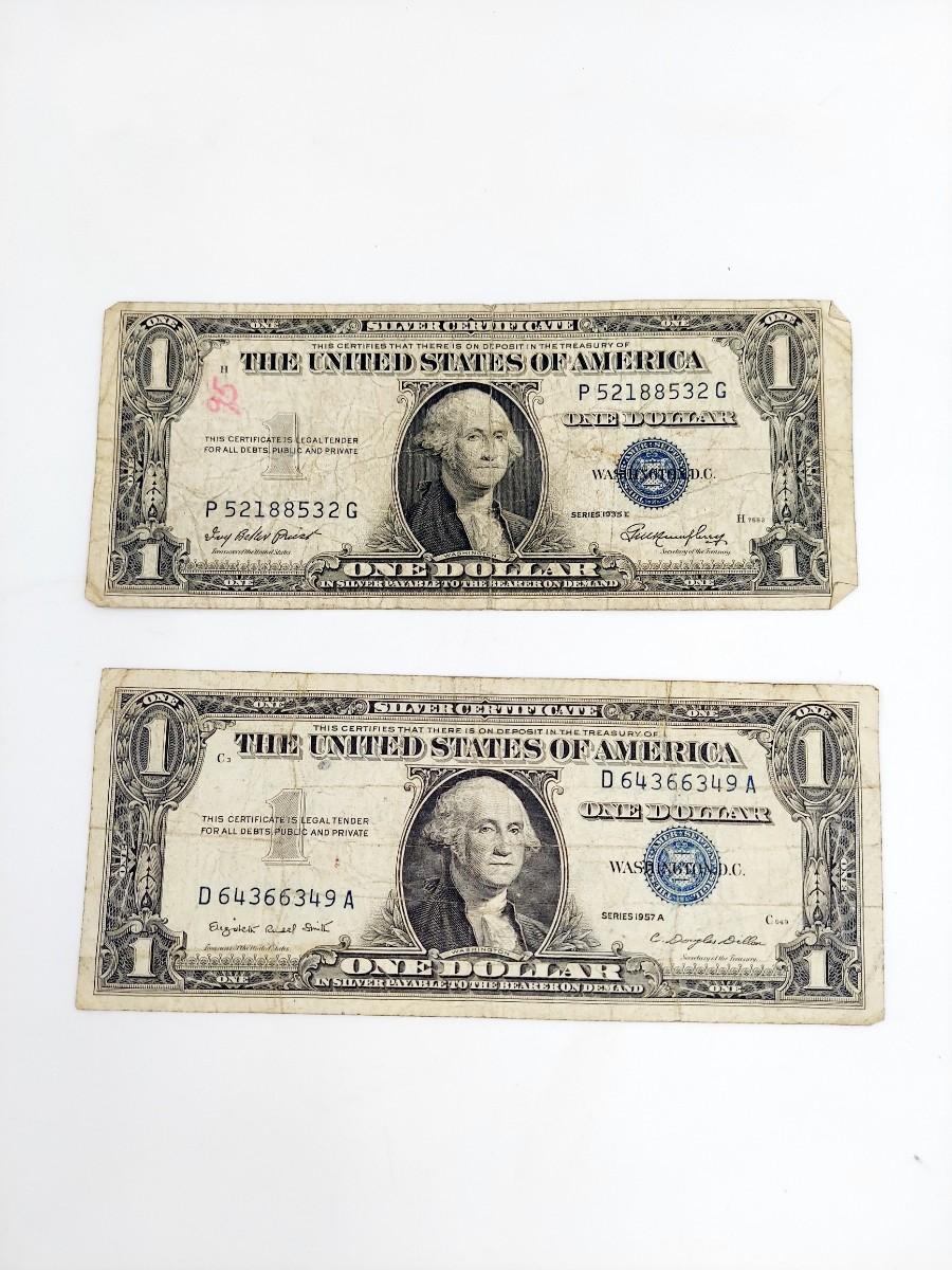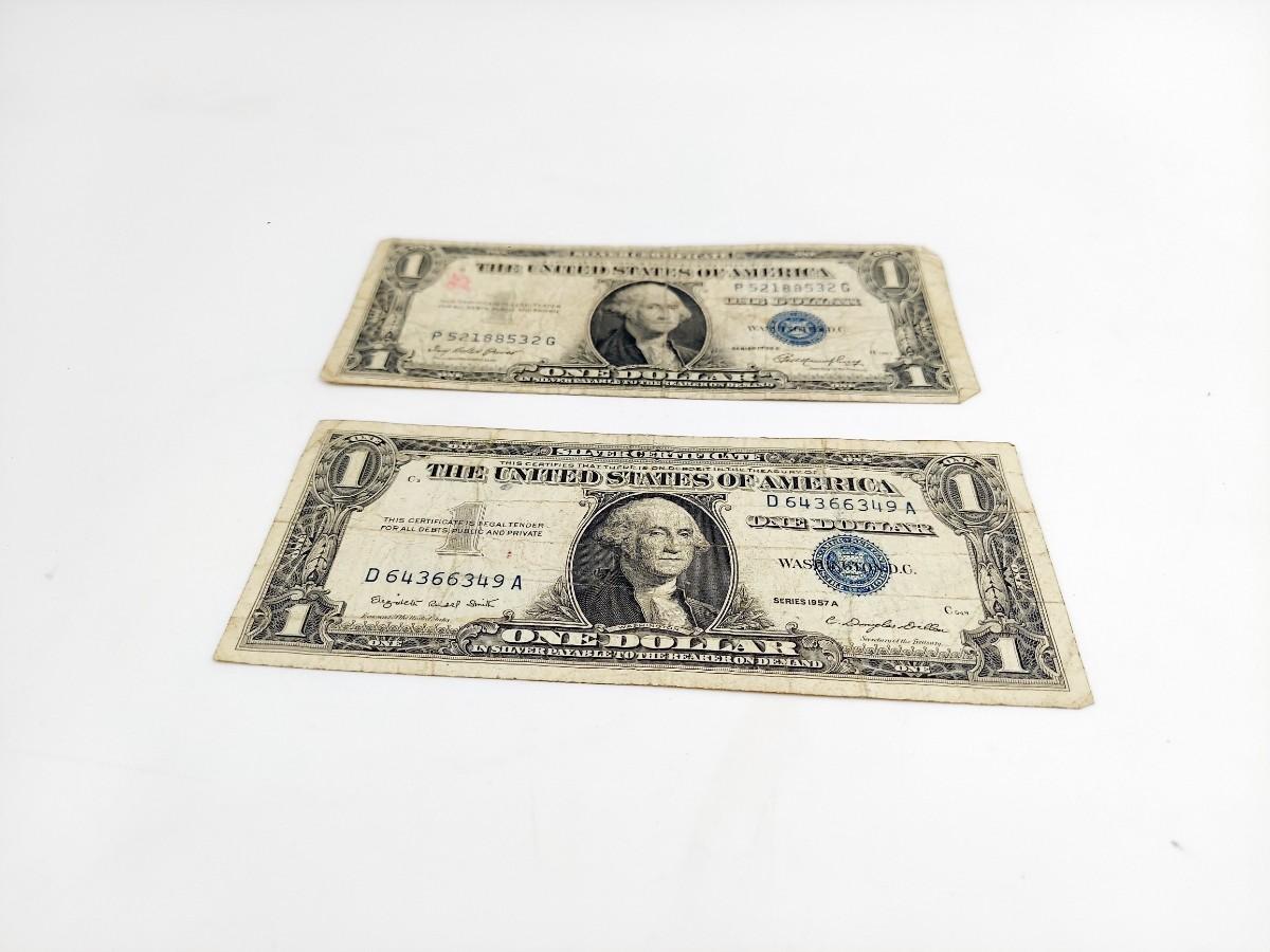 2 $1.00 BILL SILVER CERTIFICATE - 1935 & 1957