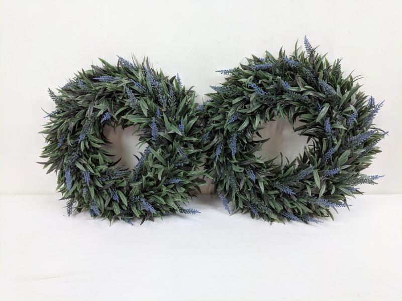 2- 17" Artificial Dusty Blue Decorative Springtime Wispy Lavender Wreath - New