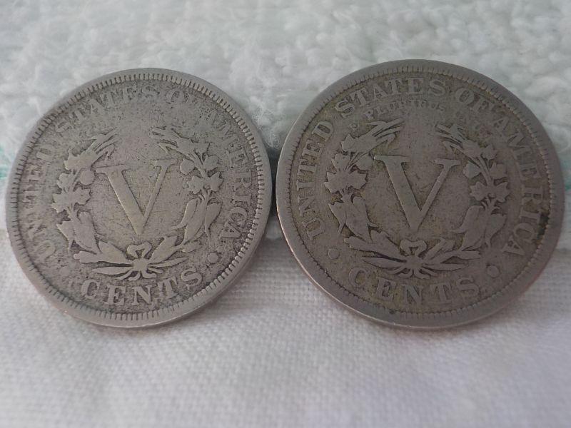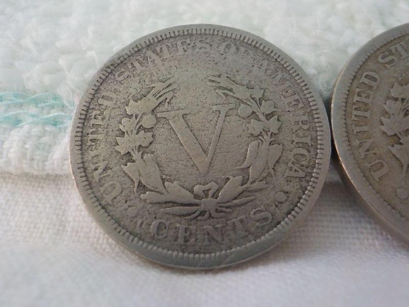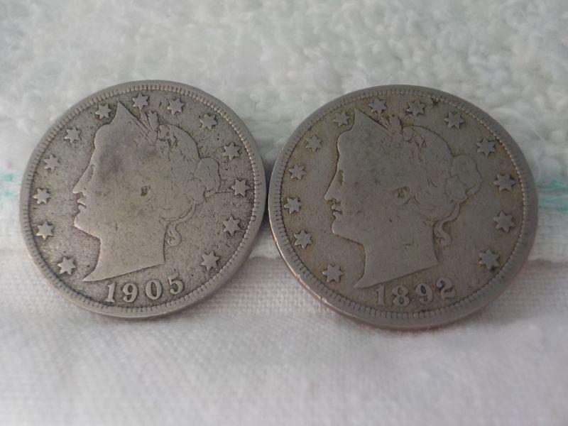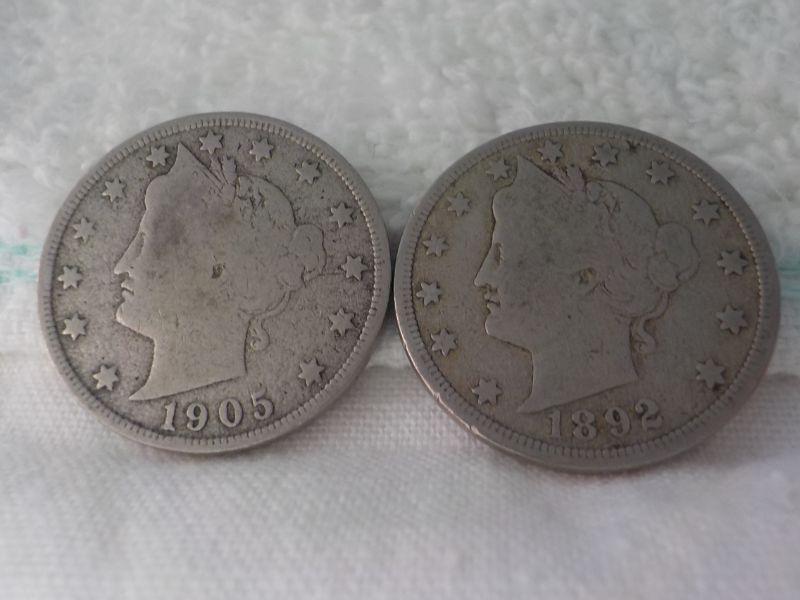 2- 1892 and 1905 V nickels.