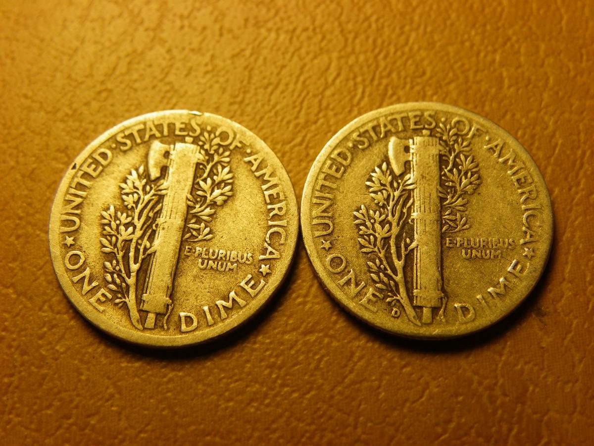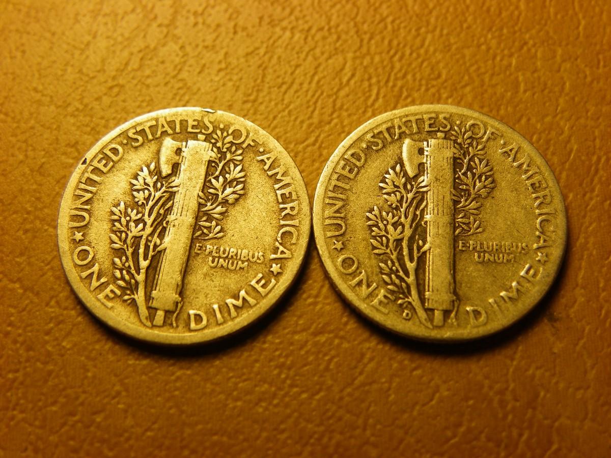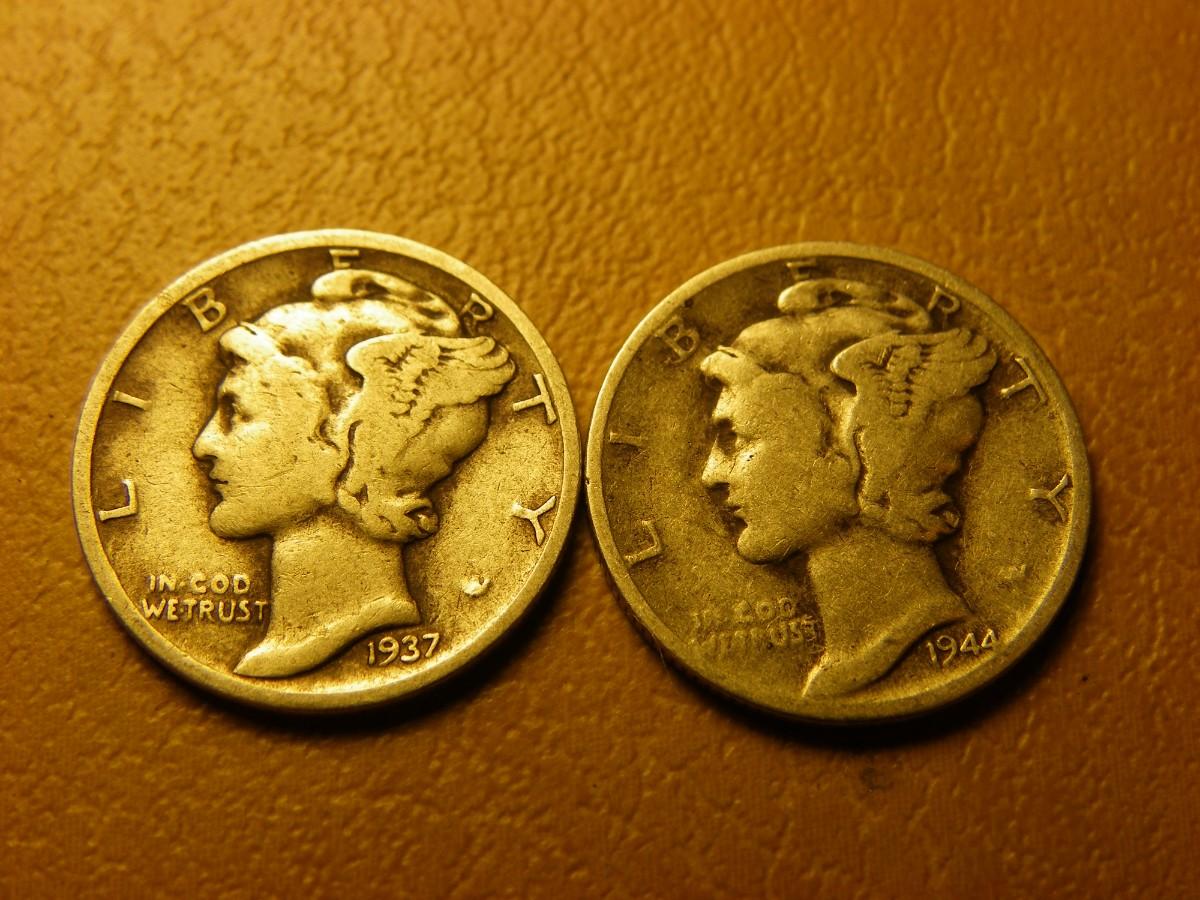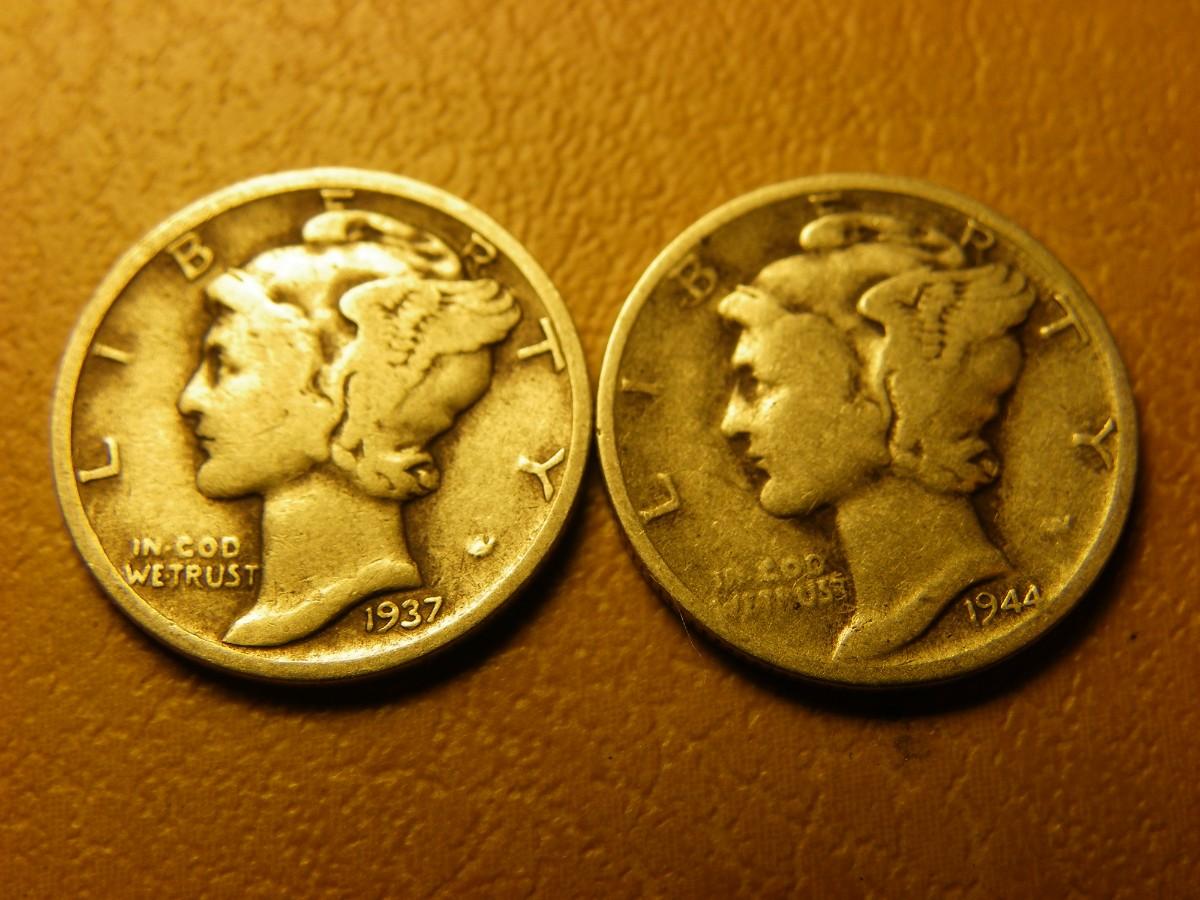2- 1939 and 1944 Mercury silver dimes.