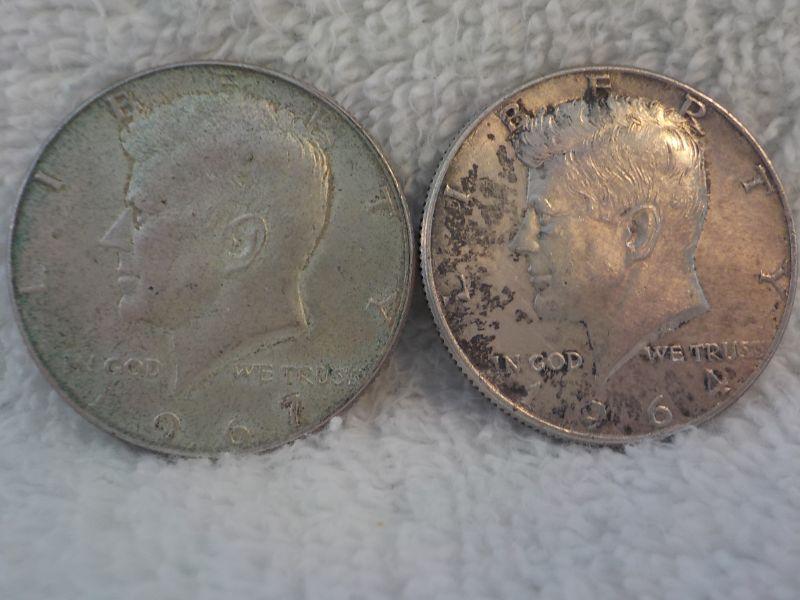 2 - 1962 and 1964 Kennedy silver half dollars.