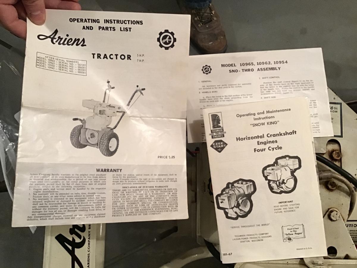 Near-mint 1969 Ariens Snowblower - was used earlier this year. Comes with original manuals.