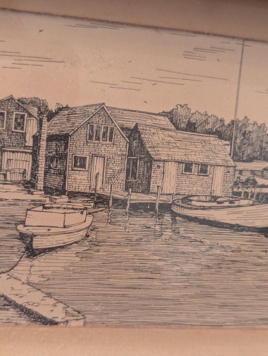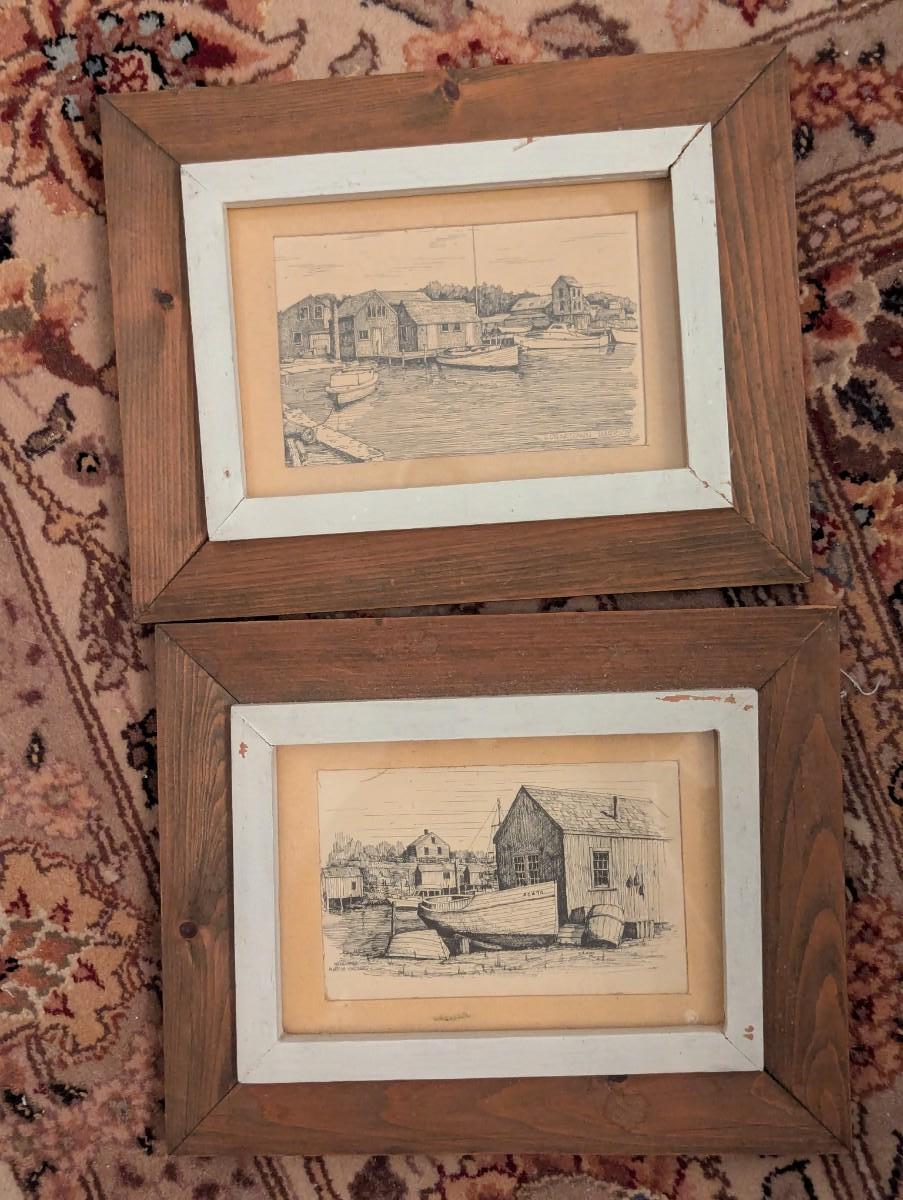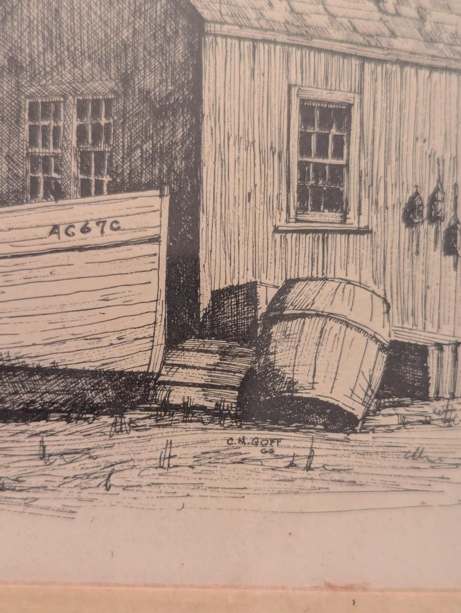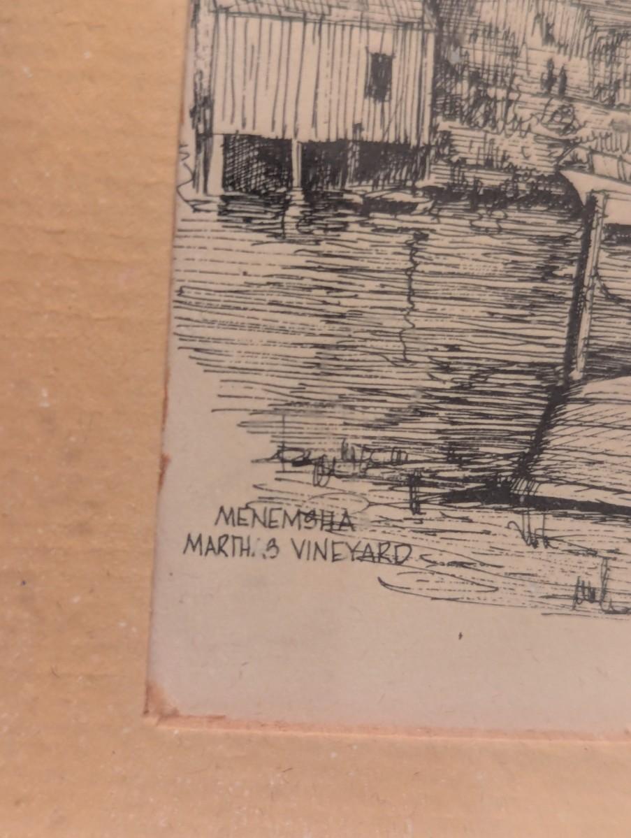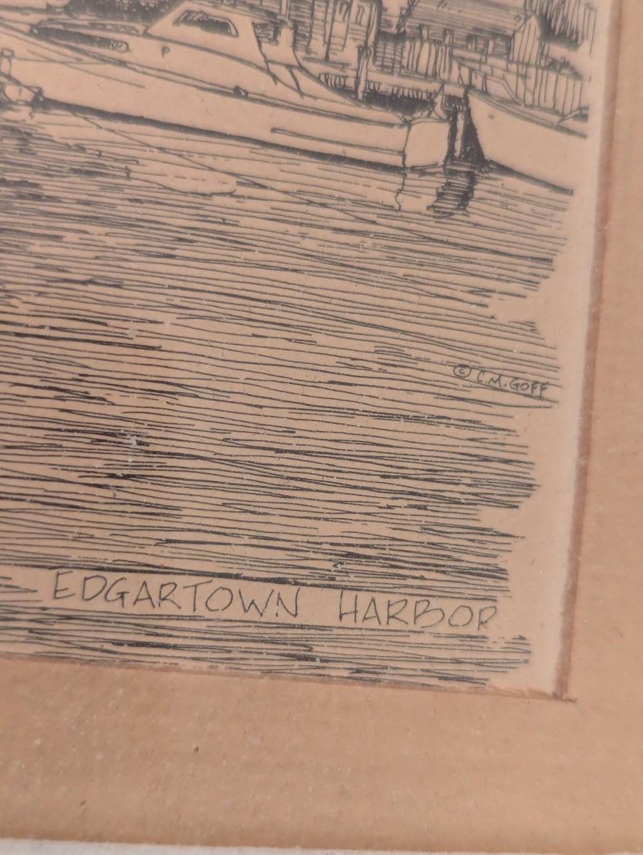 2 - 1970's Matted C.M. Goff Prints Martha's Vineyard & Edgartown Harbor Approx 10 1/8" x 8"