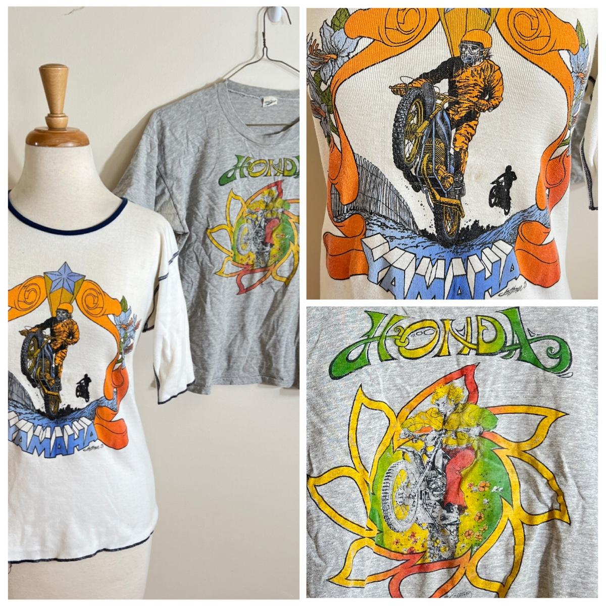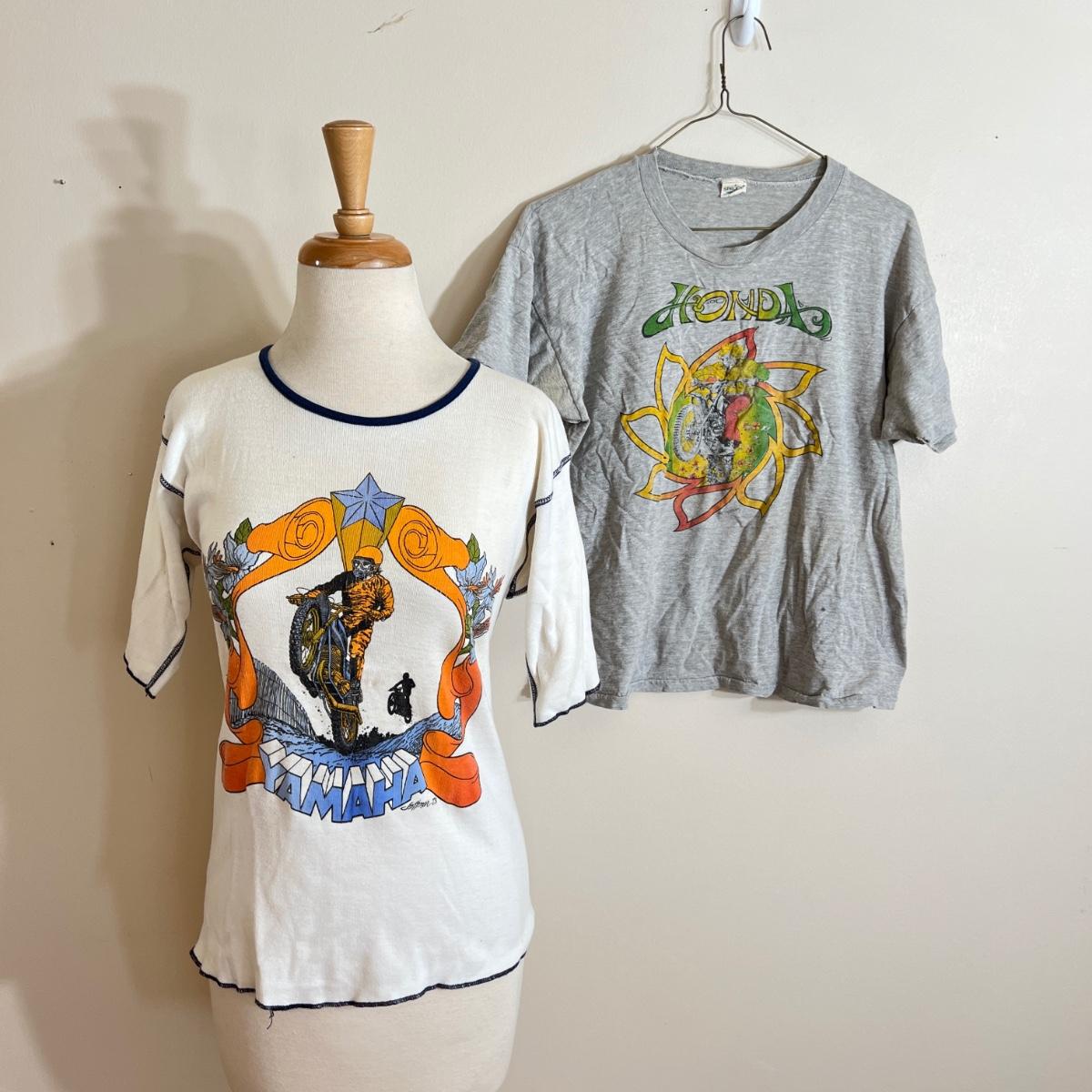2 Vintage 1970’s Motorcycle T-Shirts, Tshirts - Honda, Yamaha