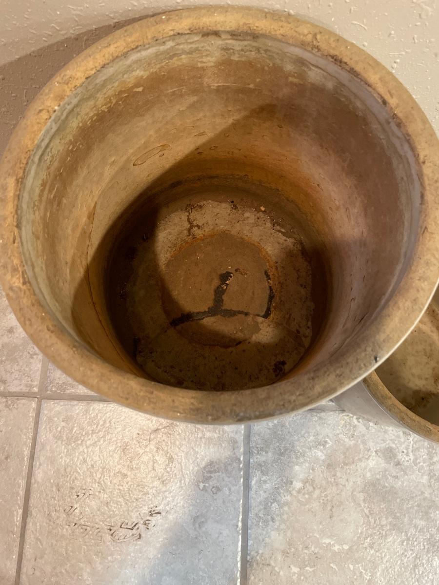 No noticed cracks on 2 gallon crock. 3 gallon has cracks on bottom (see pics).