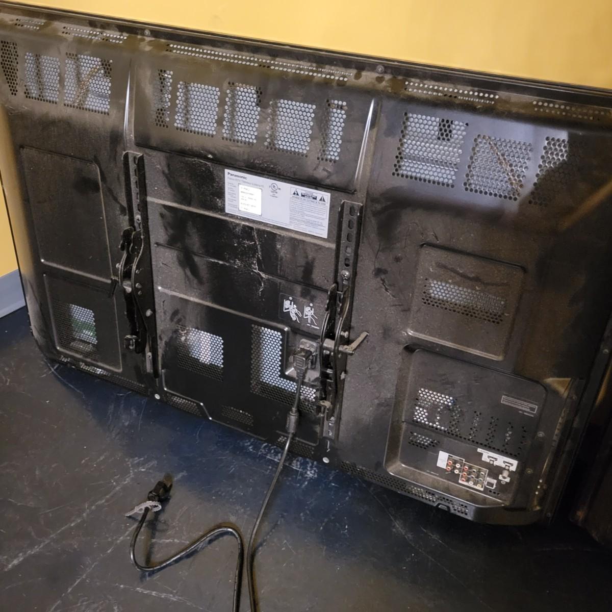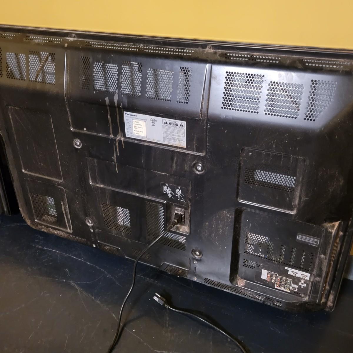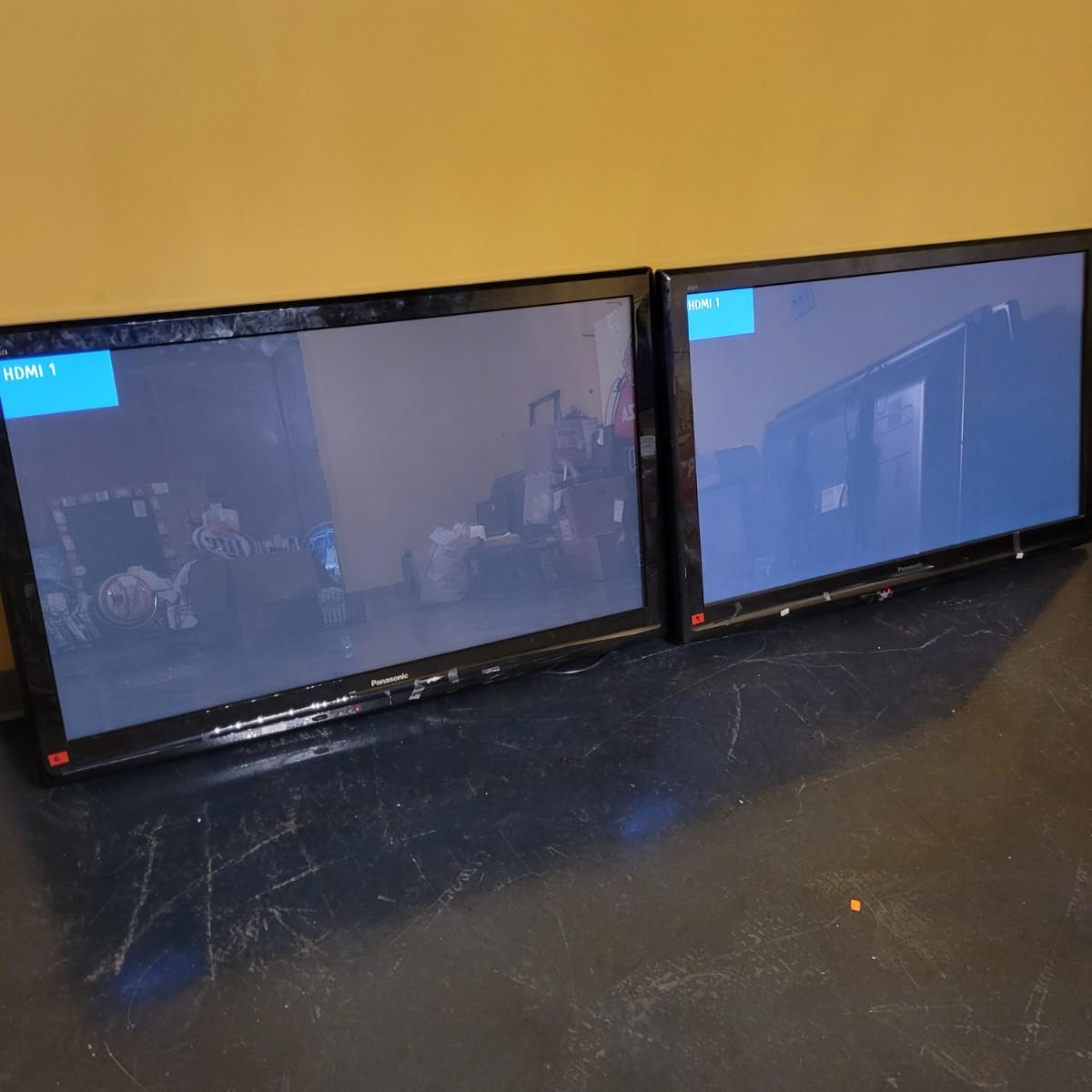2 50" Panasonic HD TVs in used but decent condition. Screens are scratch free, but there are some scratches and scuffs on the frames. One TV has a notable scratch on the upper frame, see attached pictures. 1 TV has a wall mount bracket, the other does not. Local pickup only. TVs are quite heavy. The winning bidder will need to bring help to load items. There is a small flight of stairs to go down to the parking lot.