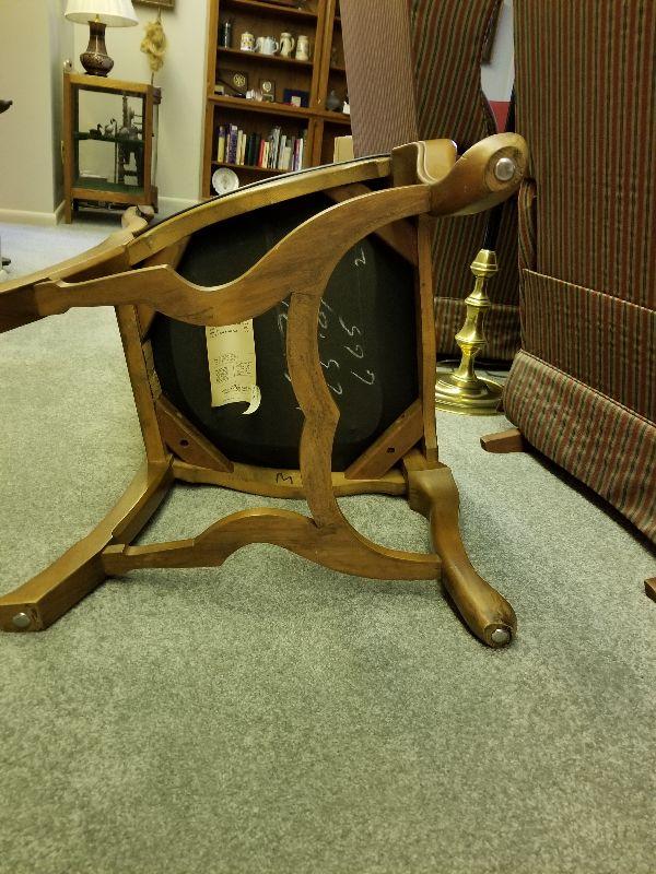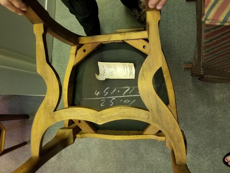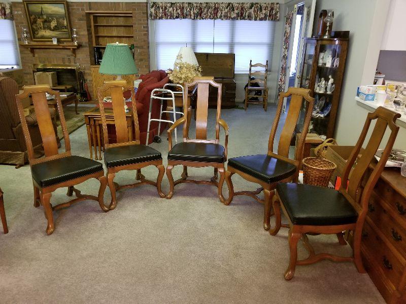 Lot includes 1 Captain's Chair and 5 standard chairs. Height from the floor to the bottom of the chairs is 17.5".