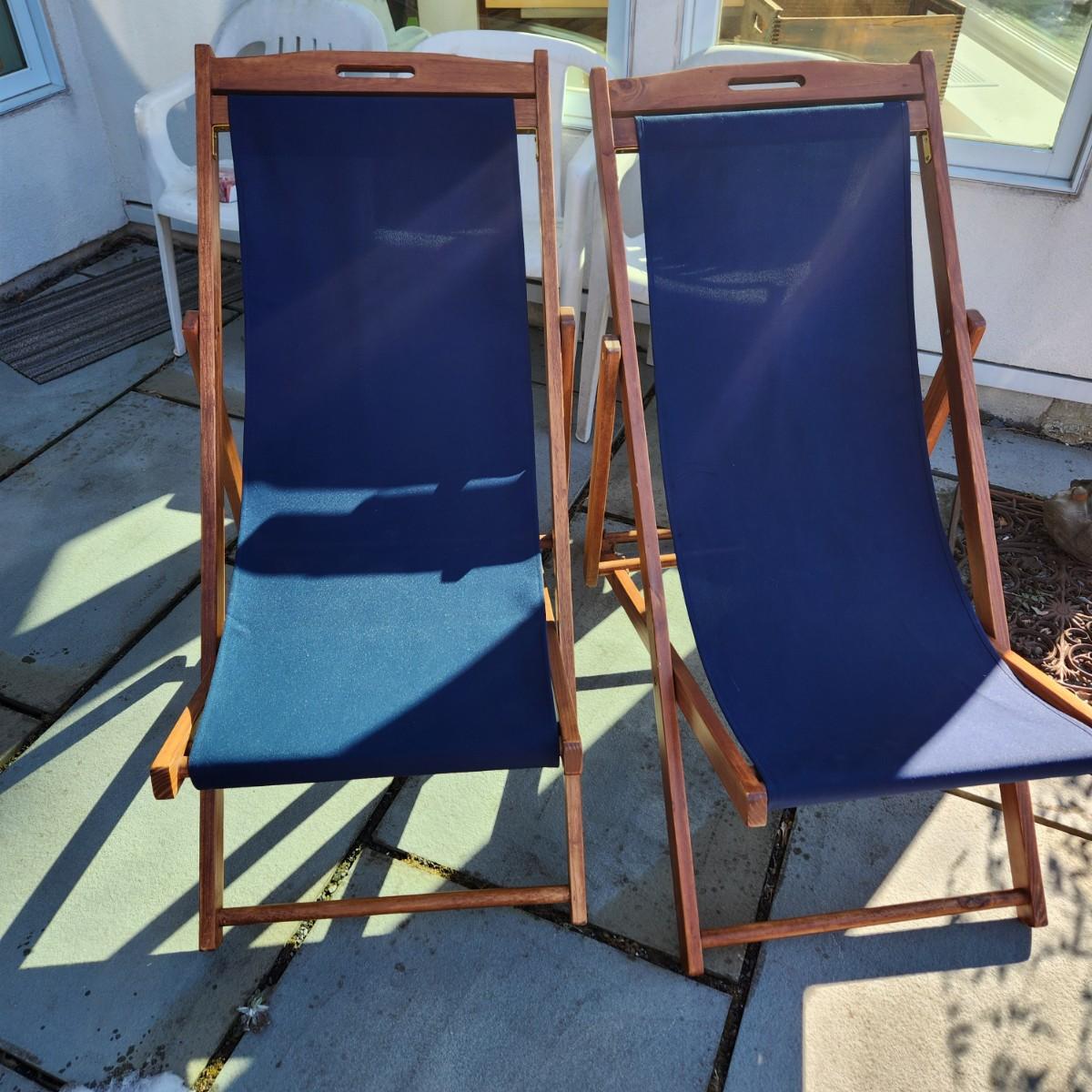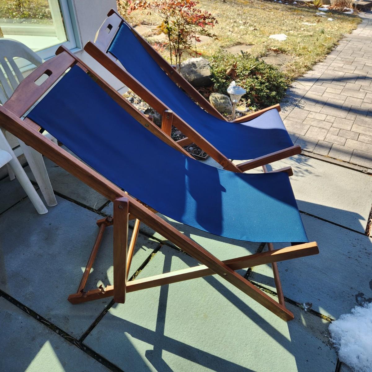 2 Adjustable Folding Wood Deck Chairs