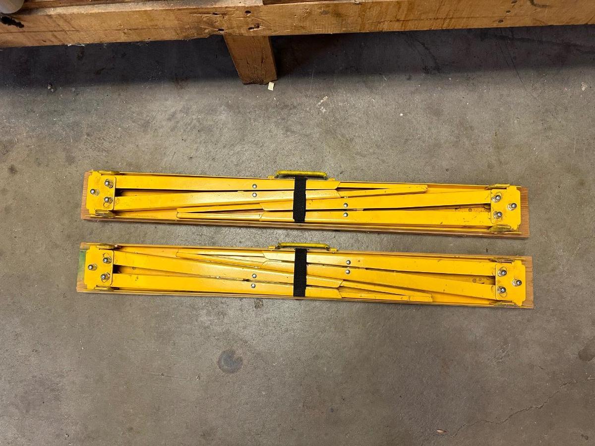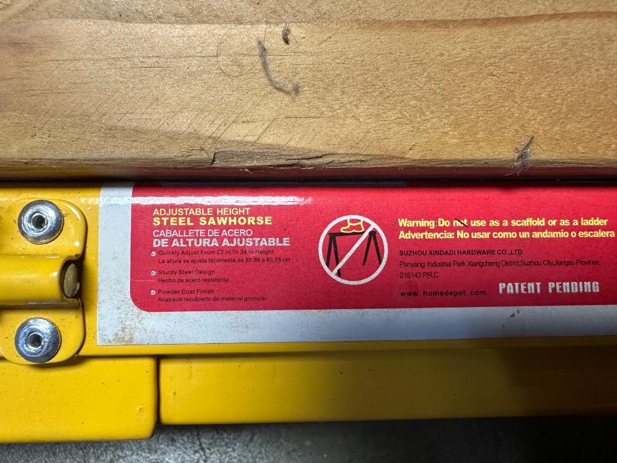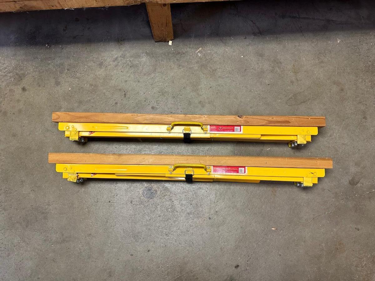 2 ADJUSTABLE HEIGHT, FOLDING STEEL SAWHORSES