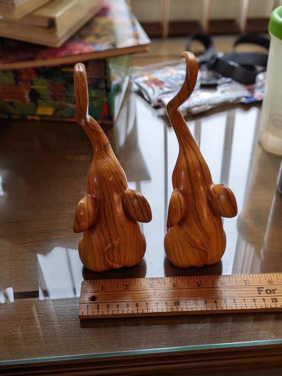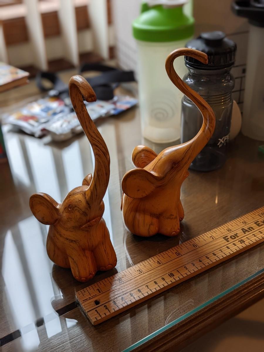 2 Adorable Wood Carved Elephants
