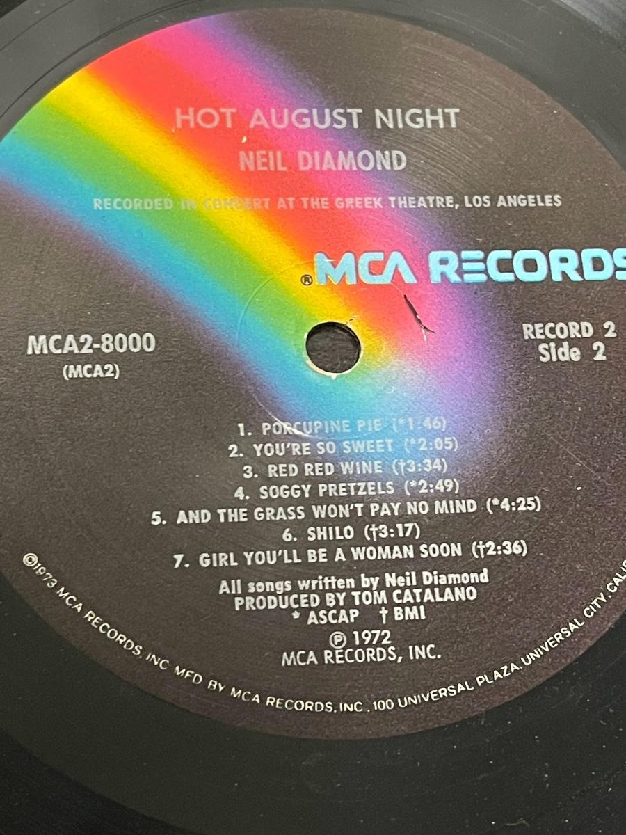 2 Album Lot of Neil Diamond Vintage Vinyl 33RPM Rainbow & Hot August Night