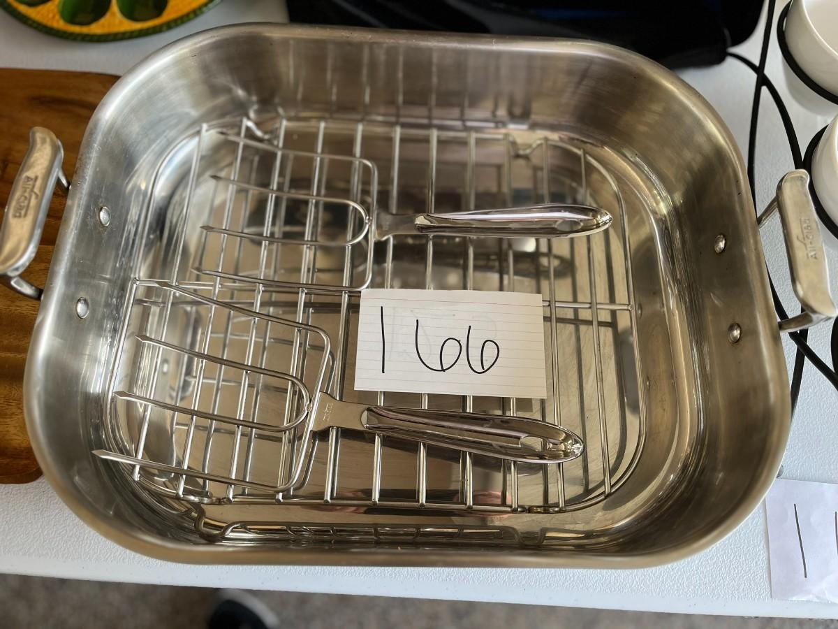 2 All Clad Stainless Steel Roaster Pan W/Meat Shredder Forks