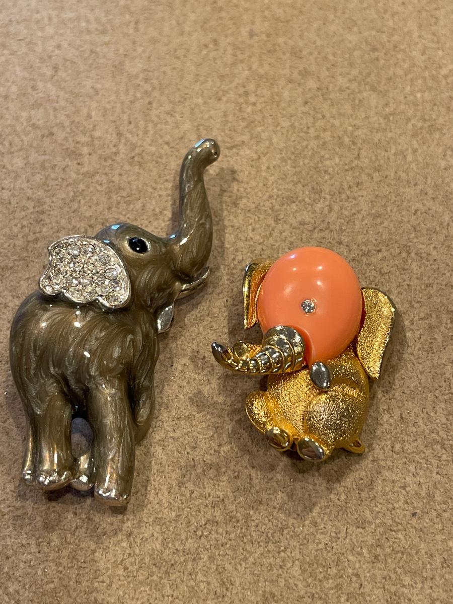 2 amazing elephant brooches