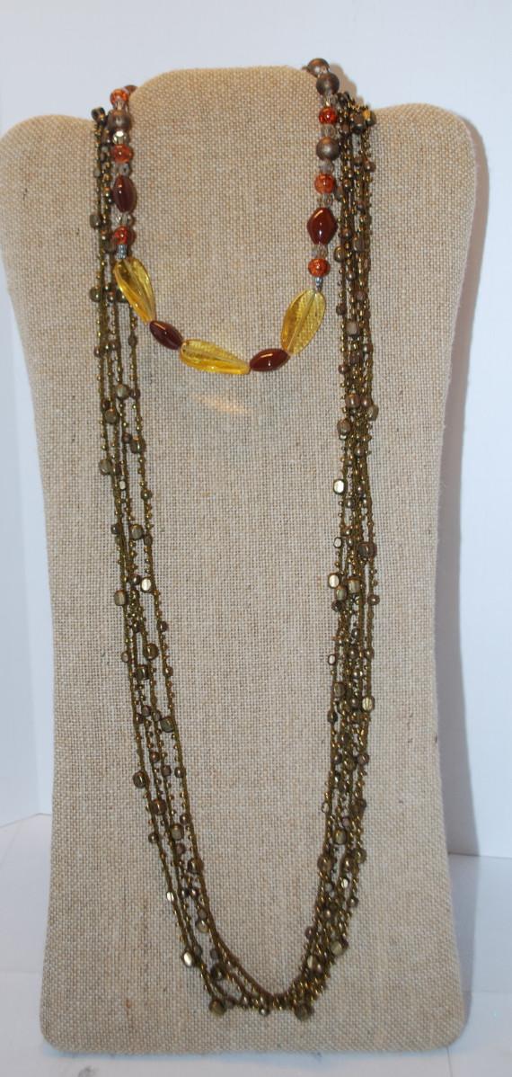 2 Ambers and Browns Stone Necklaces 1 @ 12" & 1 @ 32"