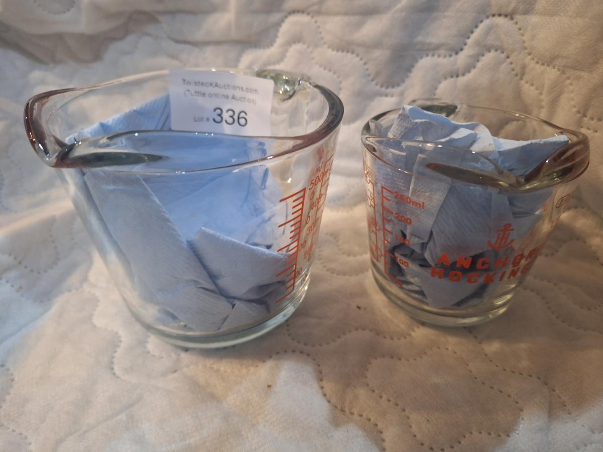 2 Anchor hocking measuring cups, 2 cup and 1 cup