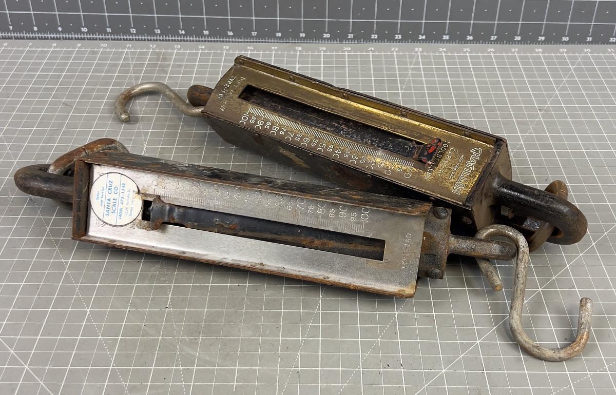 2 Antique 100# Spring Scale