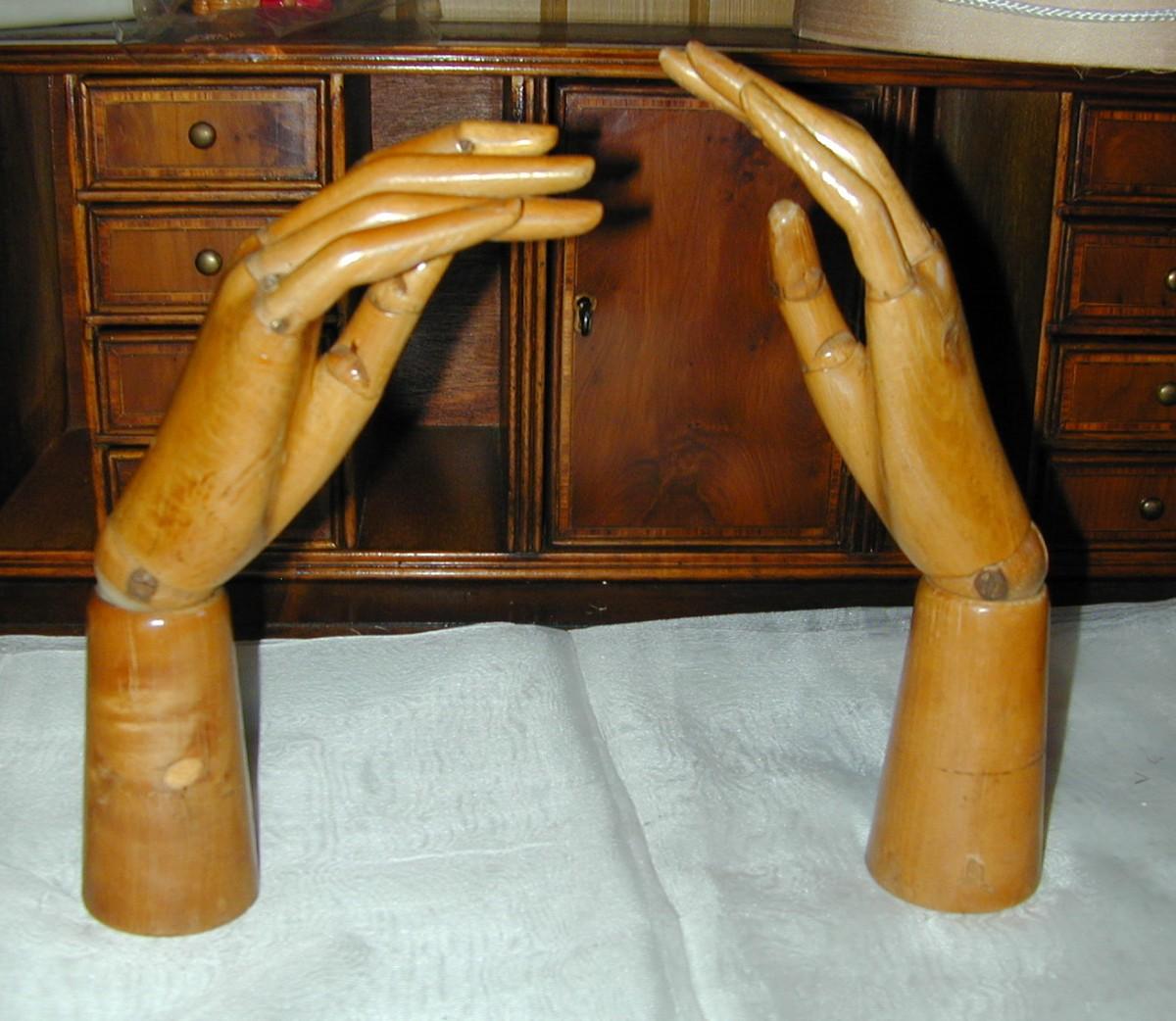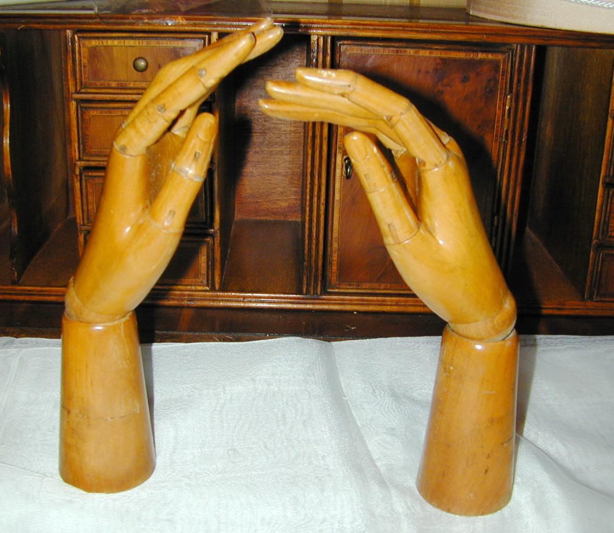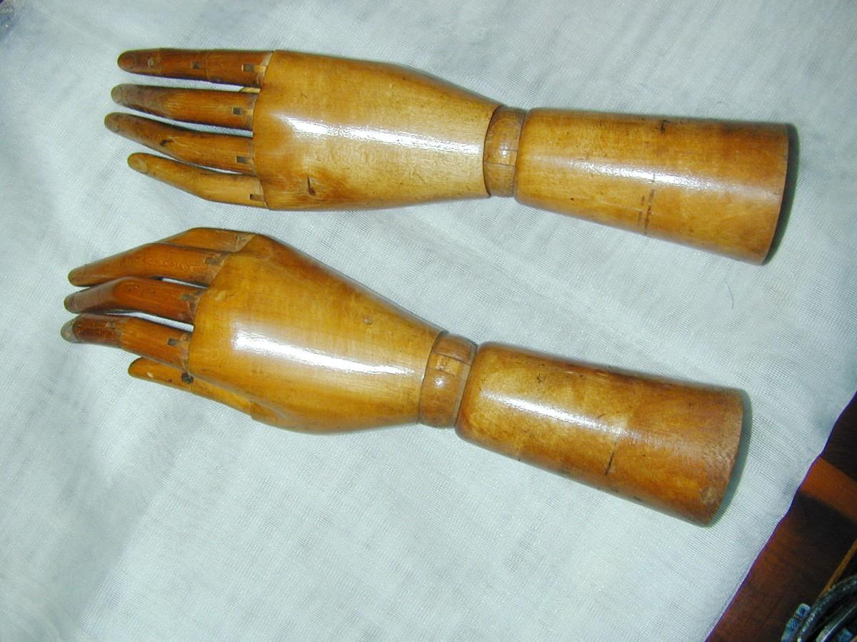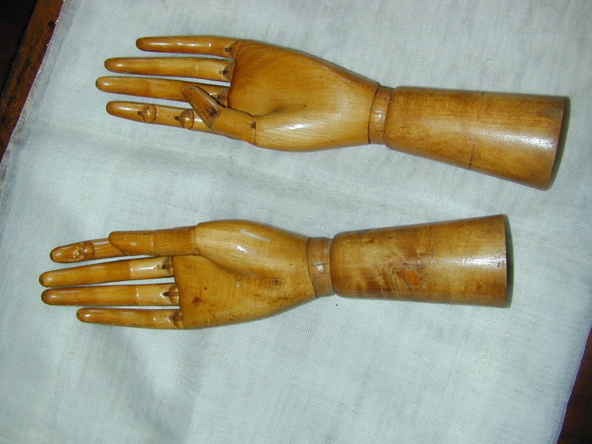 2 Antique Belgium Wood Artist Model Jointed Hand Manequins - FANTASTIC