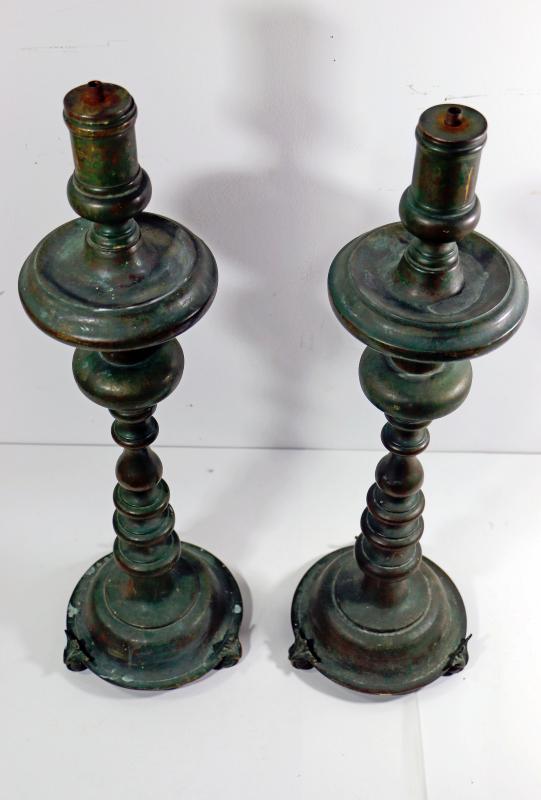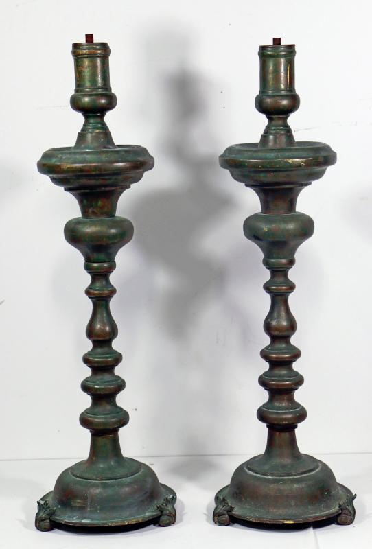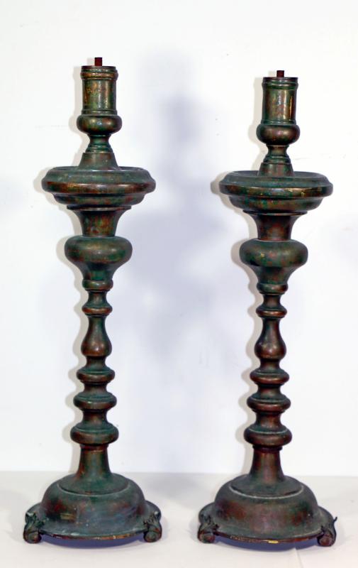 Each stands 23" tall and the bottom bases are 7" in diameter, solid bronze.