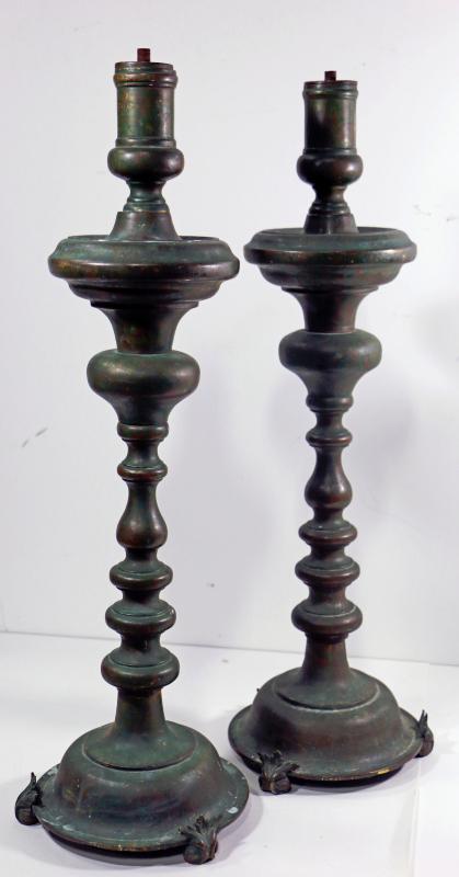 2 ANTIQUE BRONZE LAMP BASES SCULPTURES 23" TALL