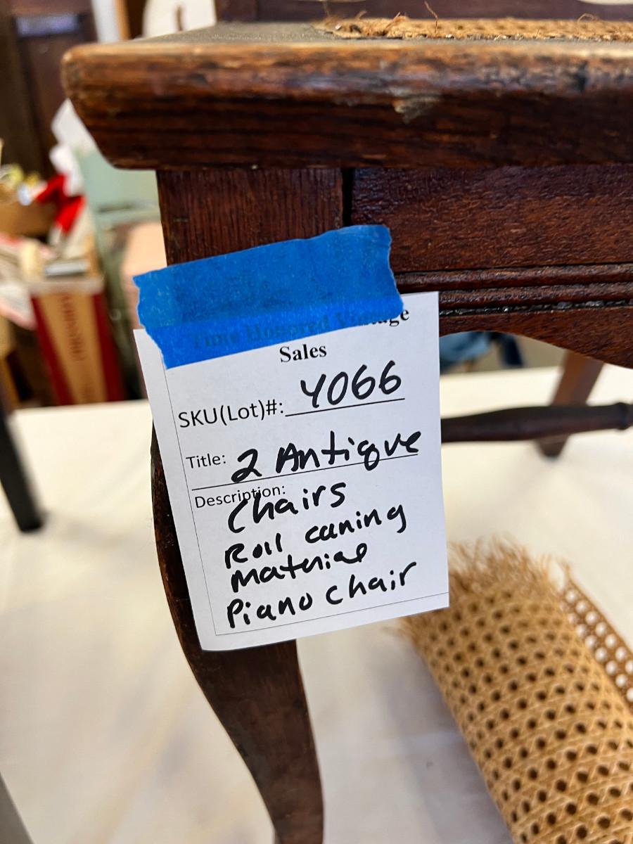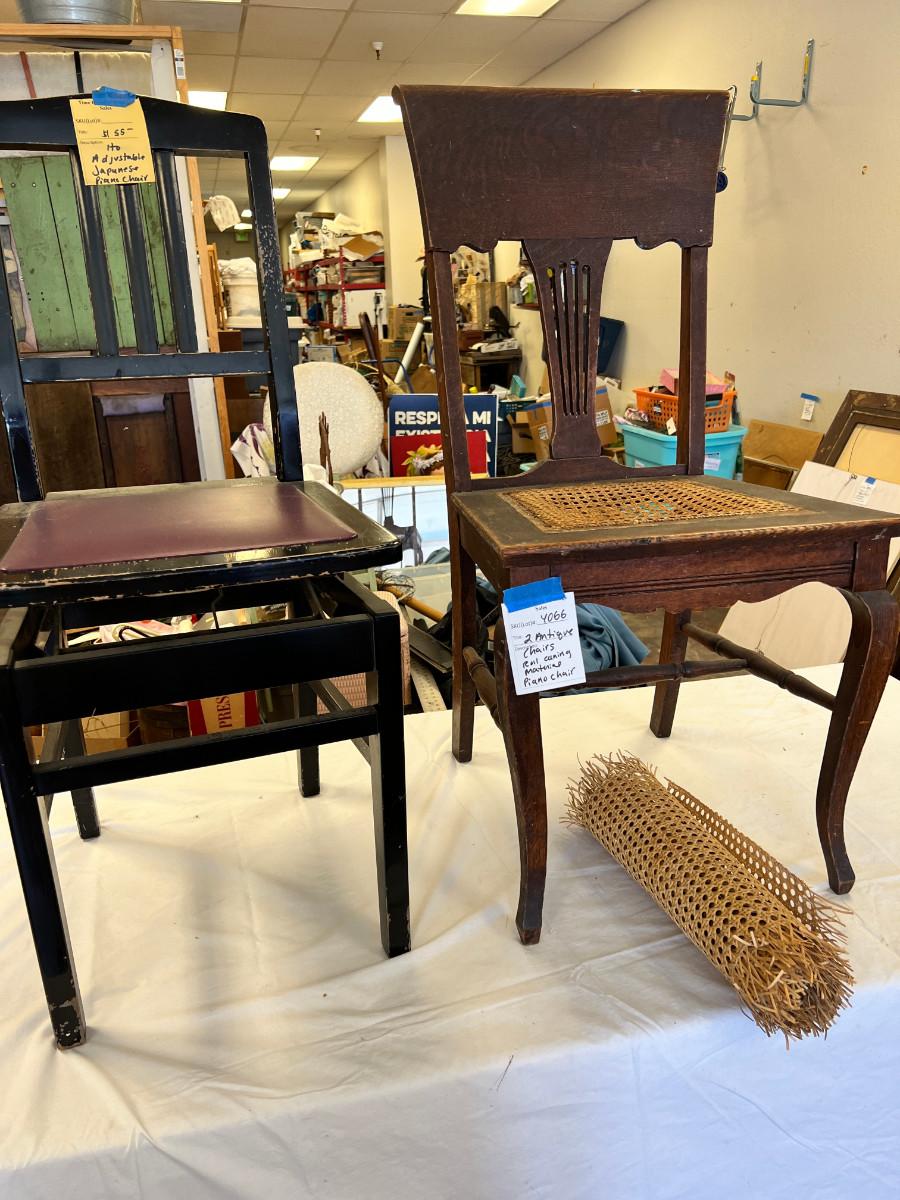 Ito adjustable Asian Piano chair, and Antique caned bottom chair with extra material to fix the seat. You guessed it, another project ! No Shipping