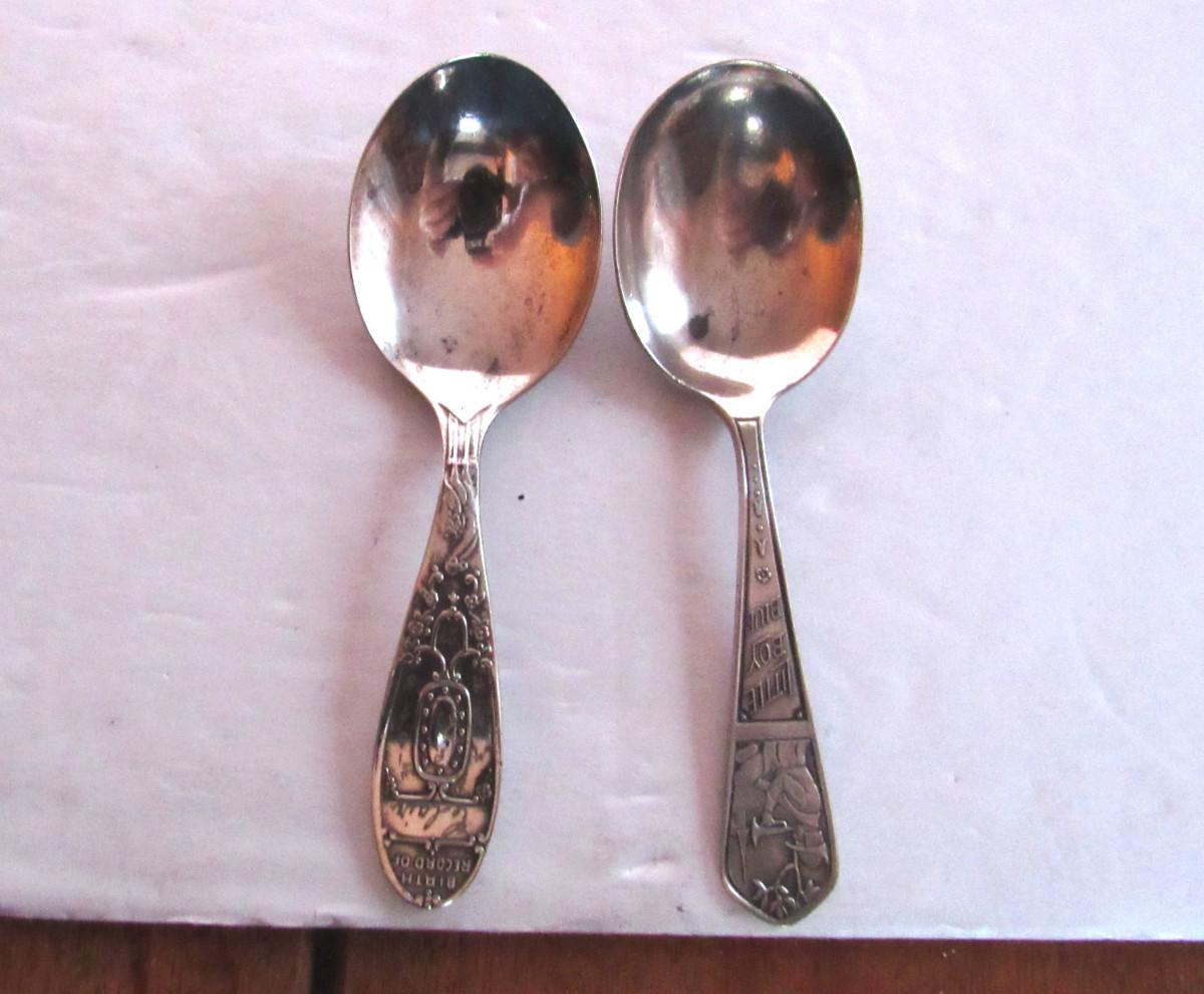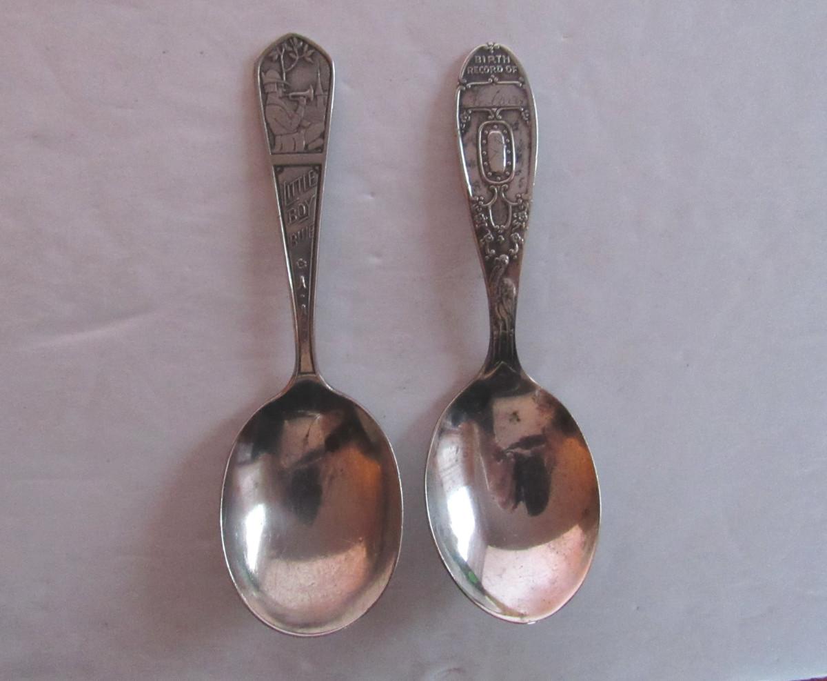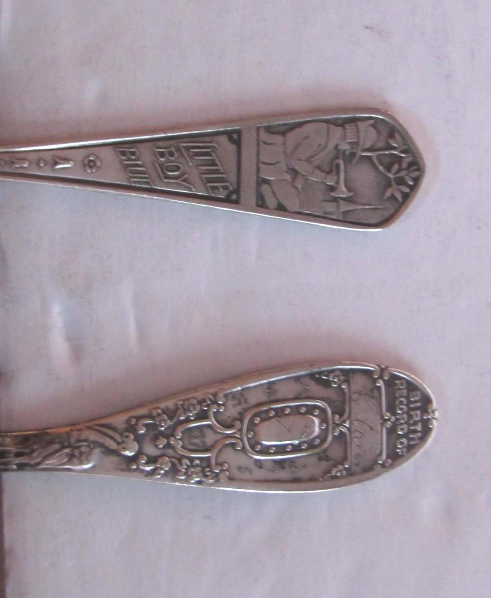 2 Antique Child's Spoons: Sterling Little Boy Blue, Silverplate Birth Record