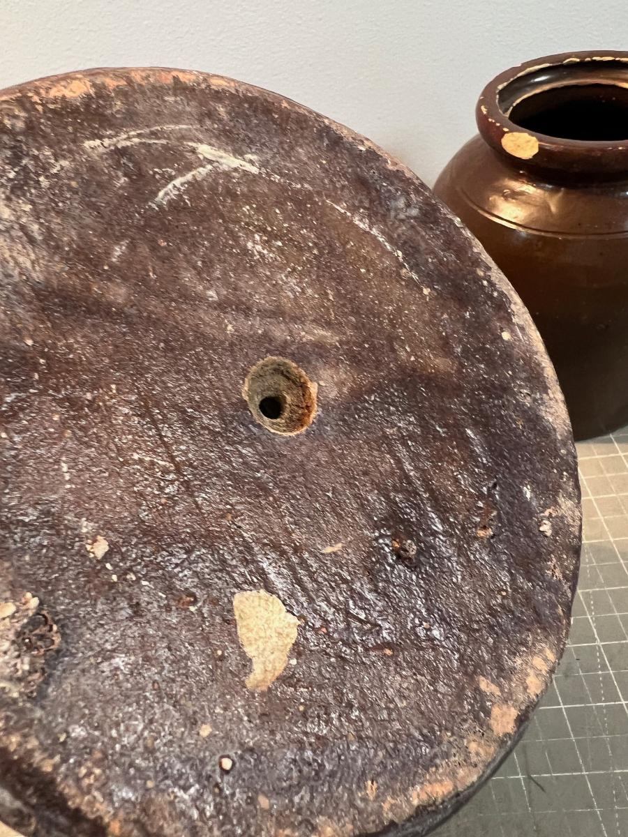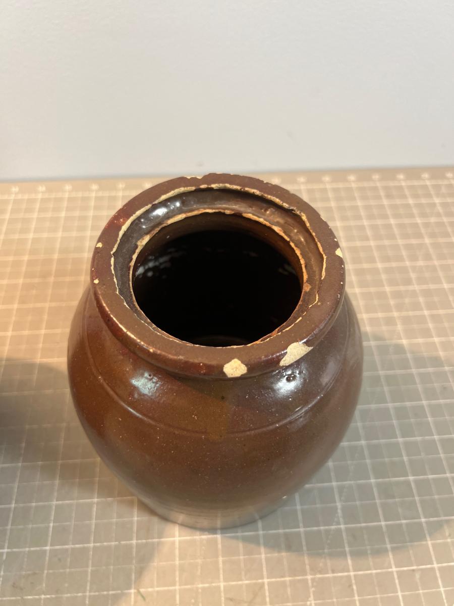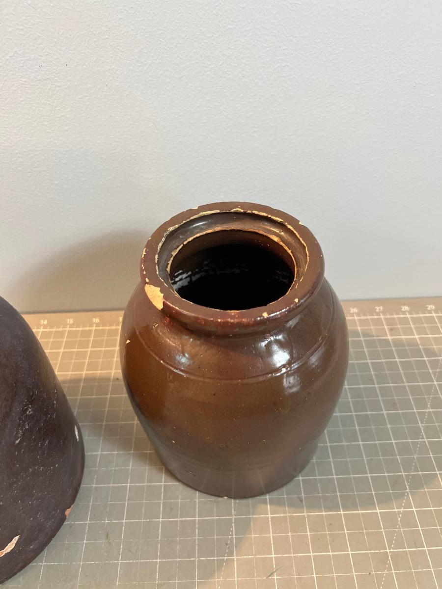 Brown, Salt Glaze ?? Not sure. Old. Real. Please bring papers, boxes or bags.