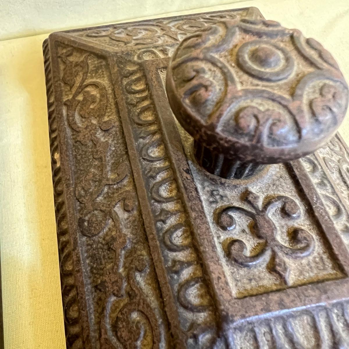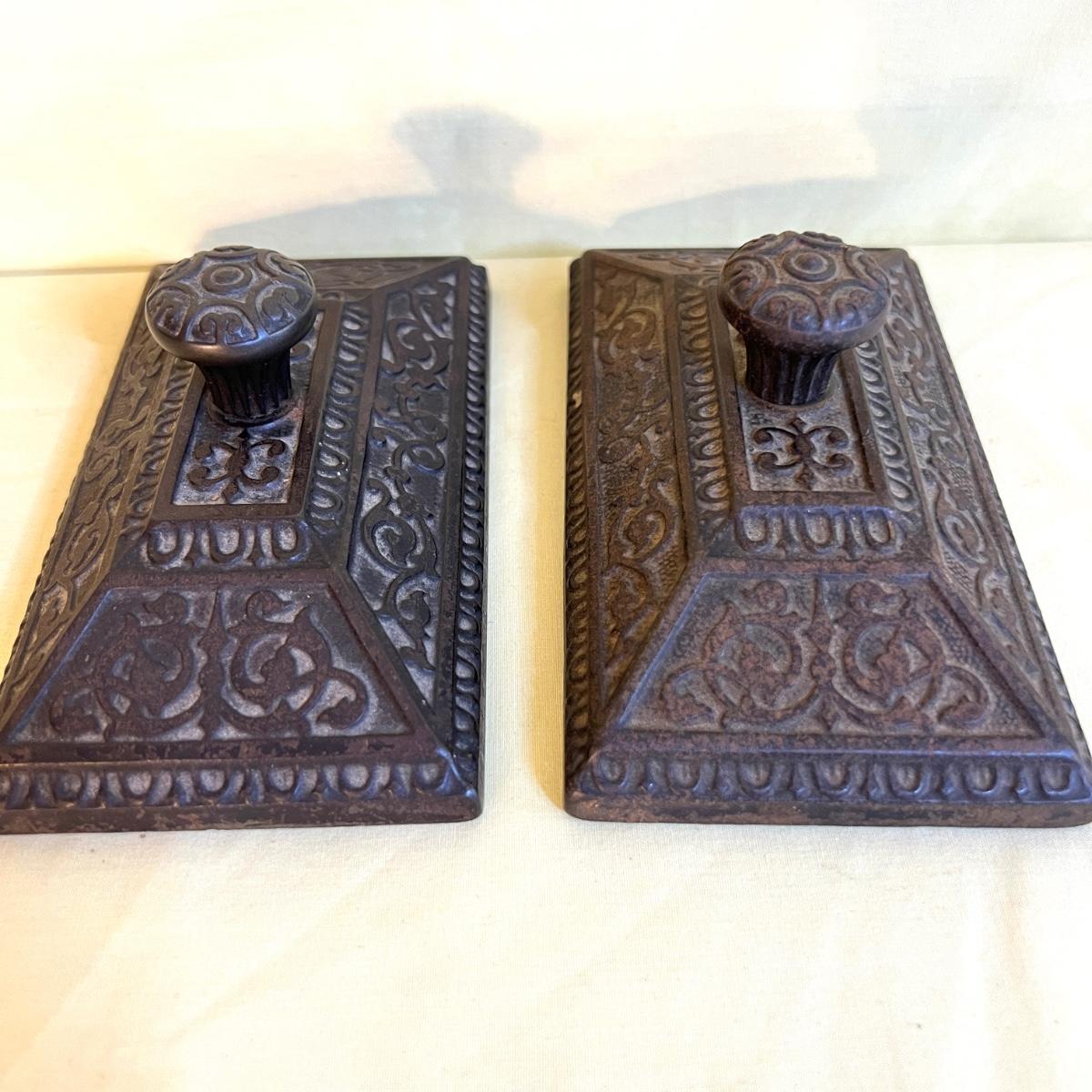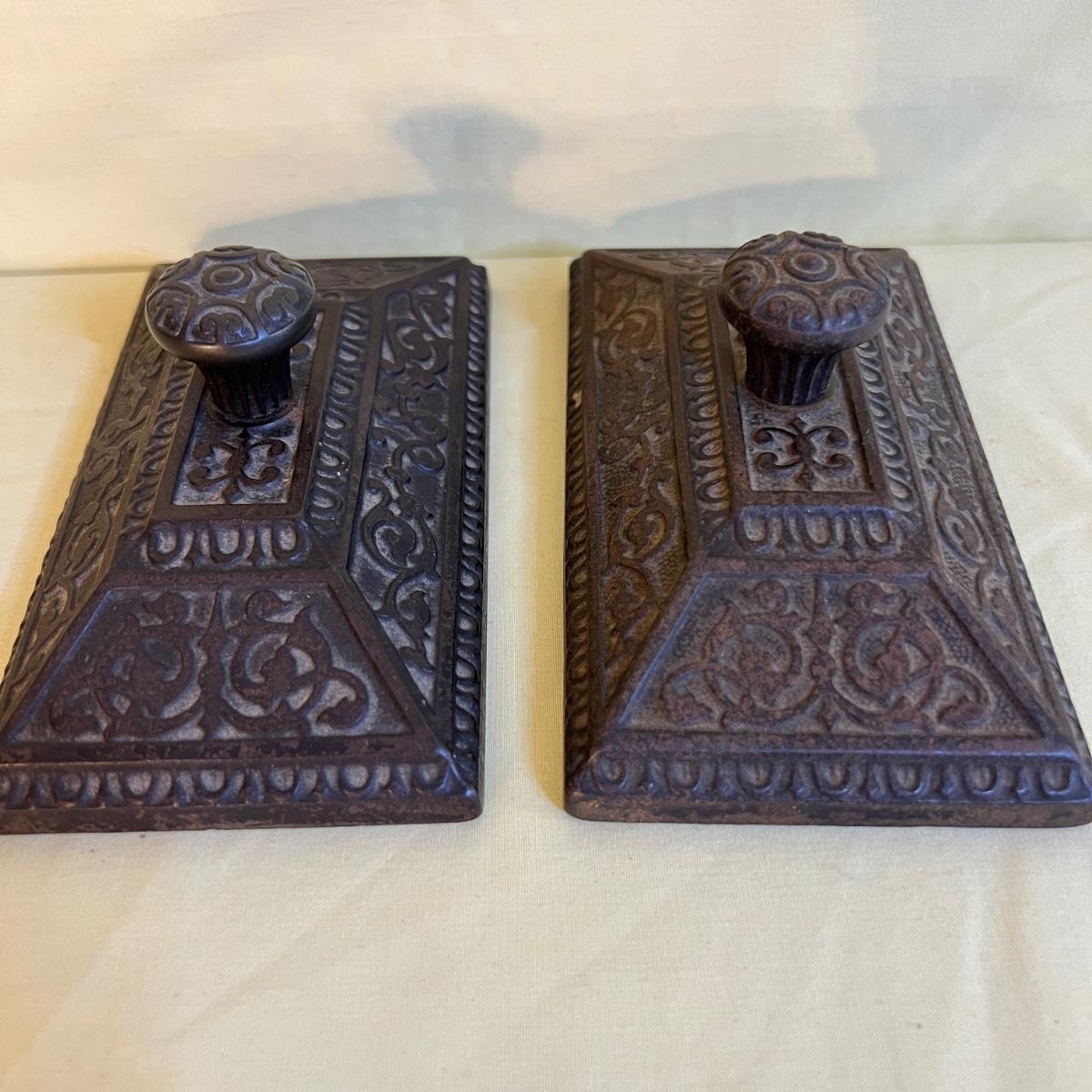 2 Antique Decorative Cast Iron Desk Paperweights Blotters