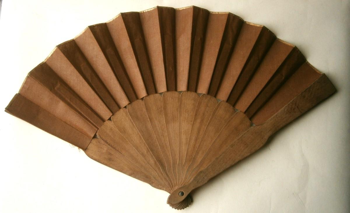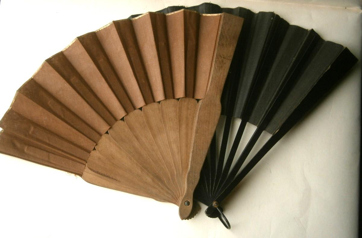 (2) Antique Fans from the Early 1900's or Earlier, 8 1/2 & 8 3/4 in. tall, cloth on wood slats.