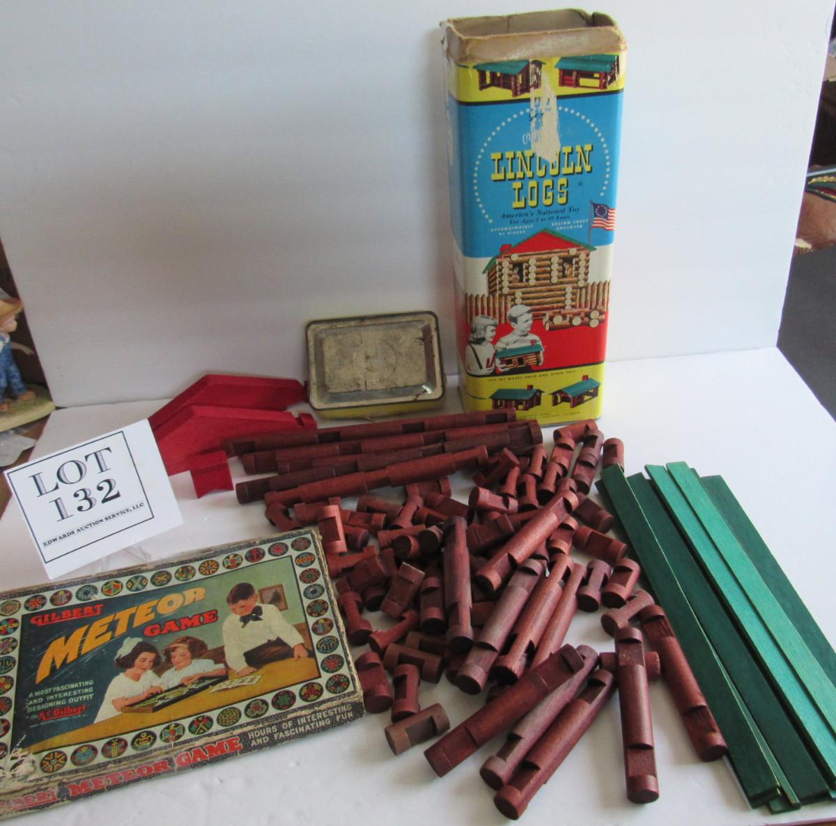 Vintage Games, Gilbert Meteor Game, Lincoln Logs, Read Description