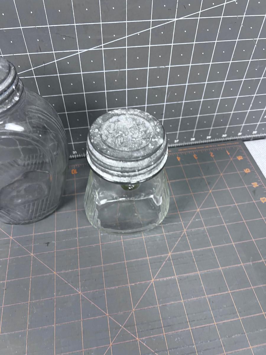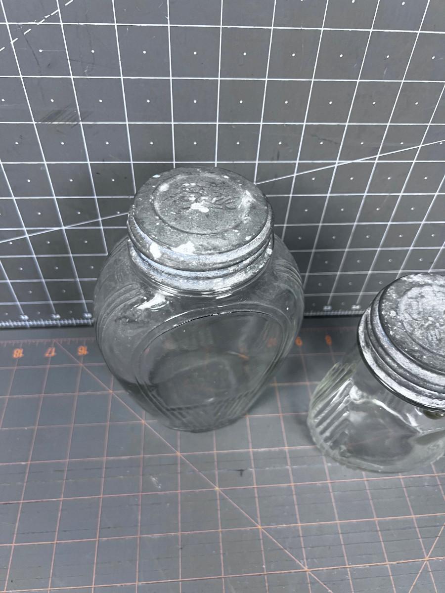 2 ANTIQUE Glass Jars with Zinc Lids EXTRA COOL!!!