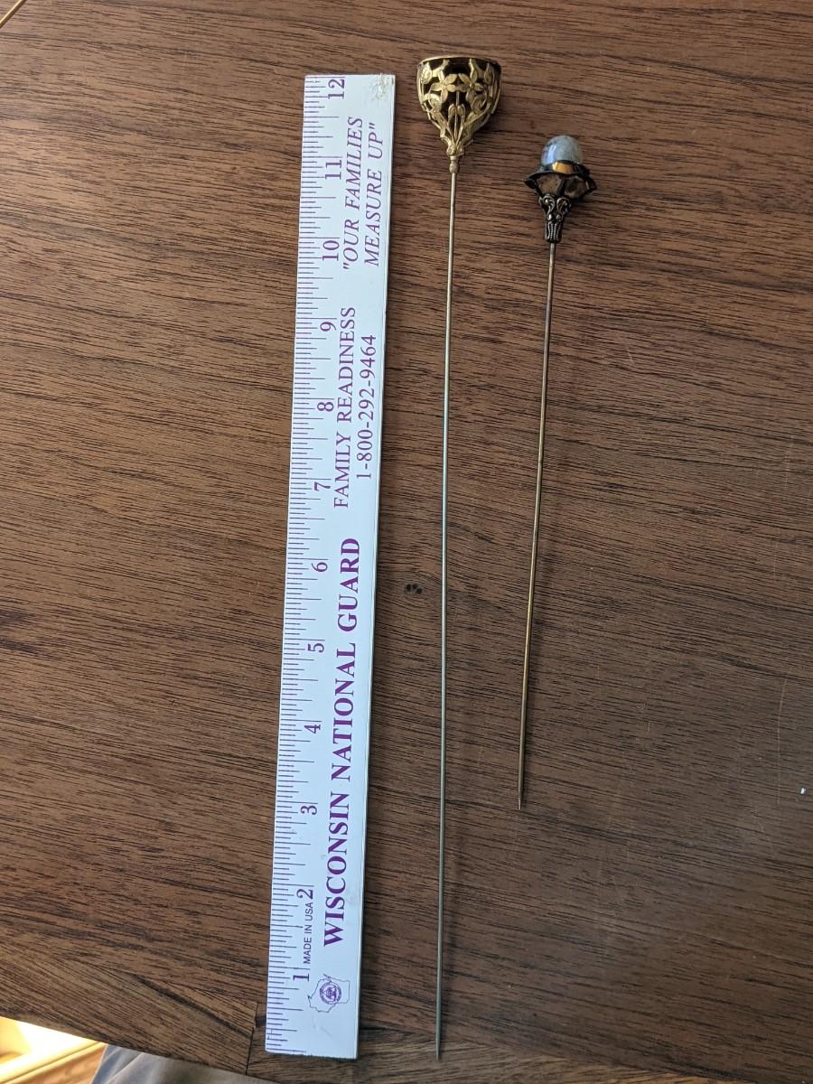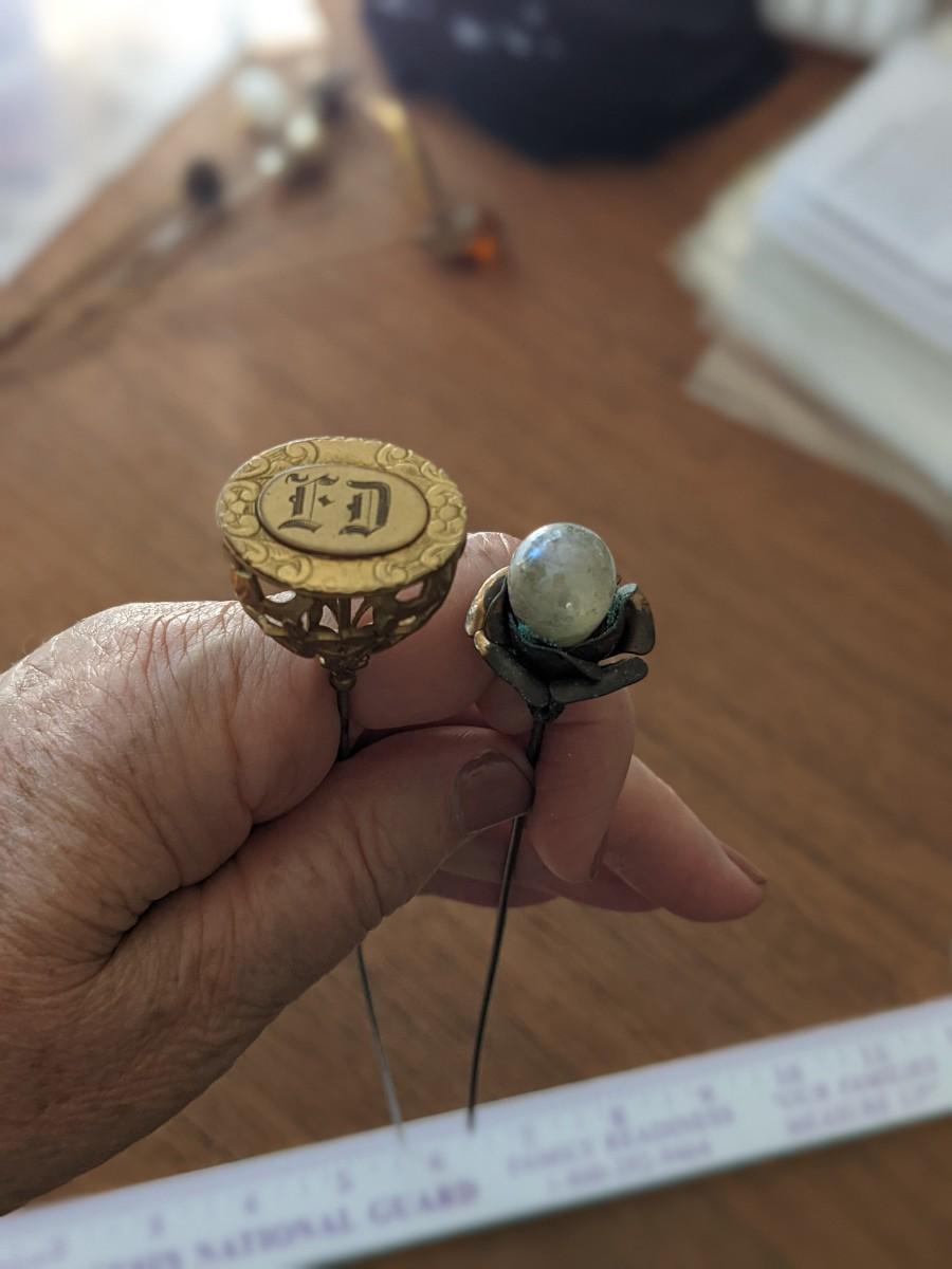 2 Antique Hair Pins F.D. and Pearl flower