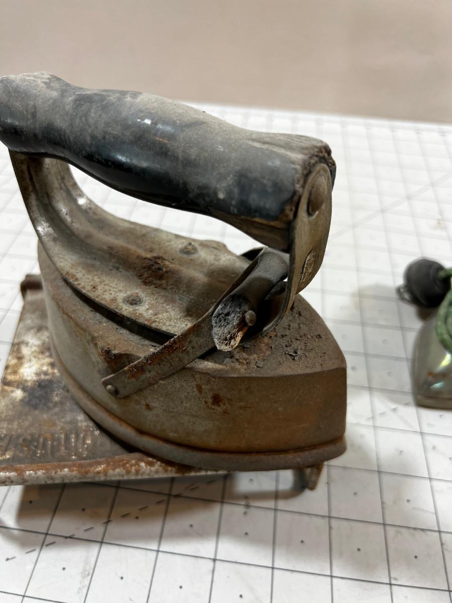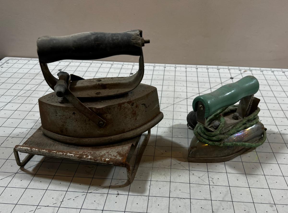 2 Antique Irons; 1 electric and 1 heat up on the Stove