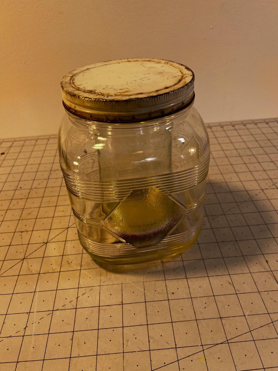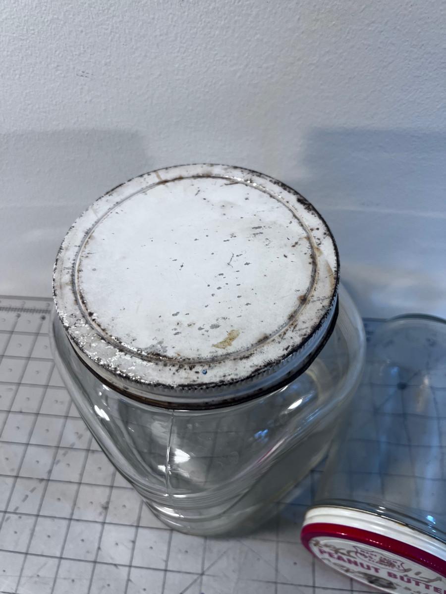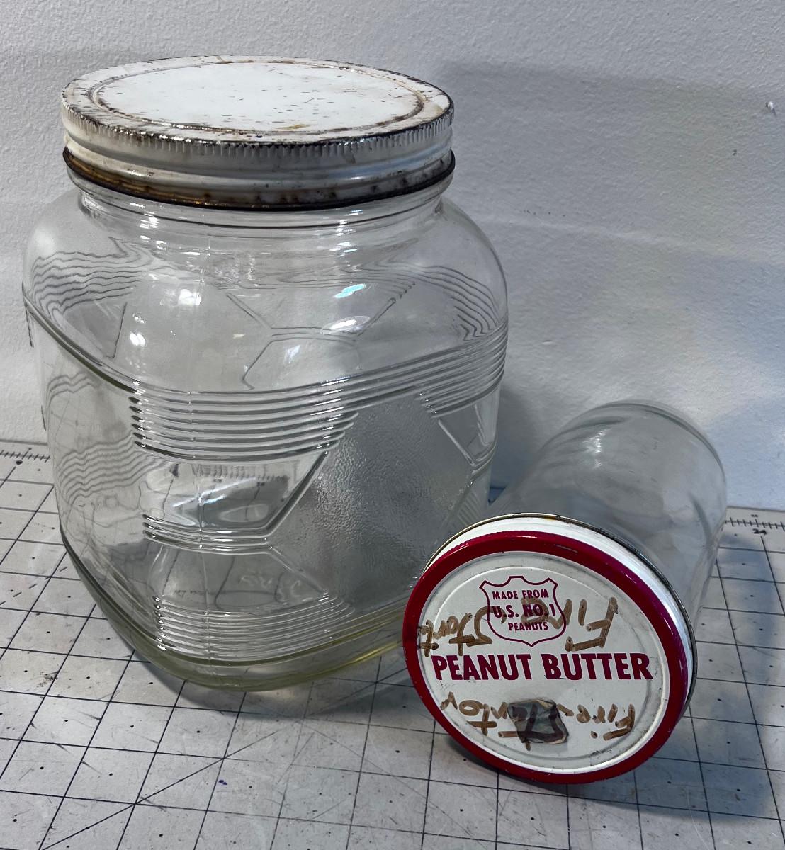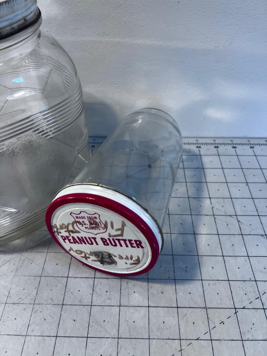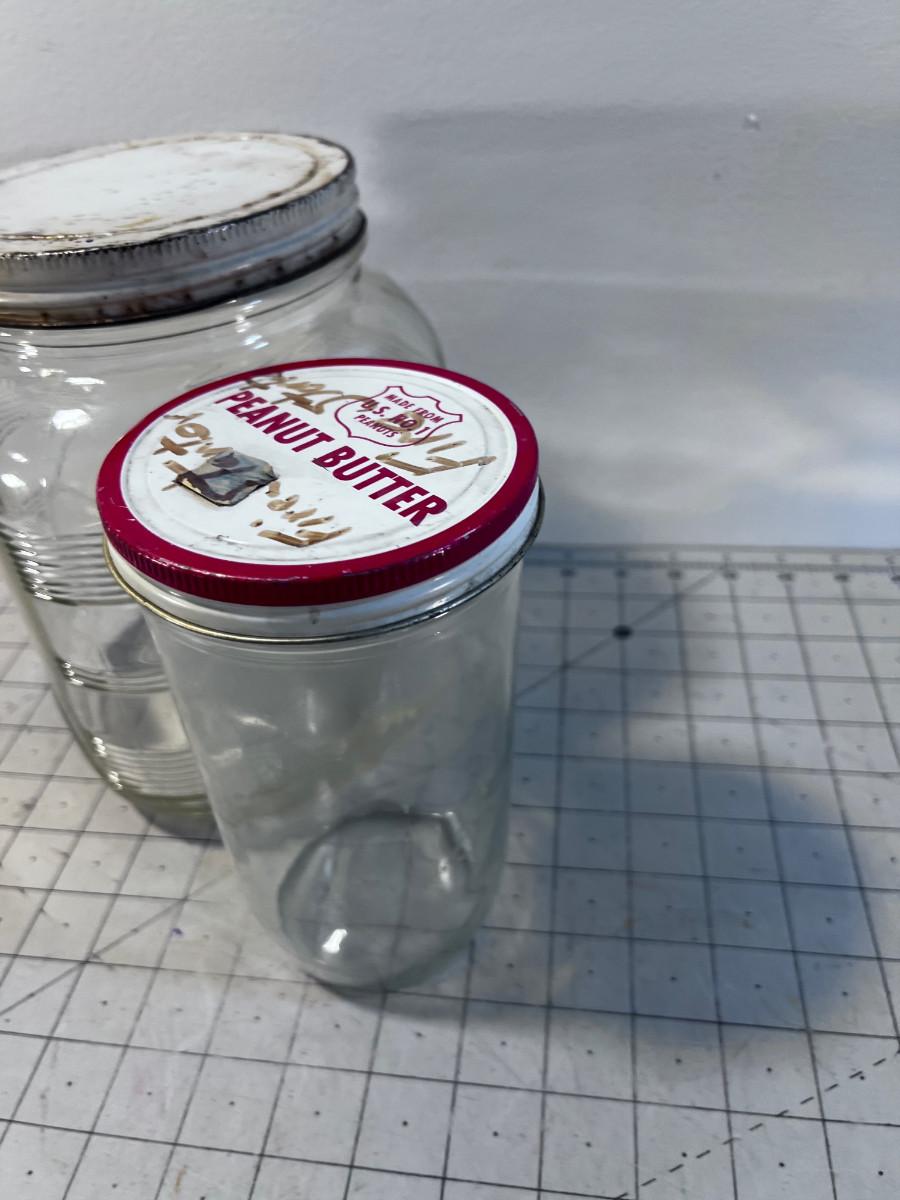 2 Antique JARS with Lids, 1 is Peanut Butter