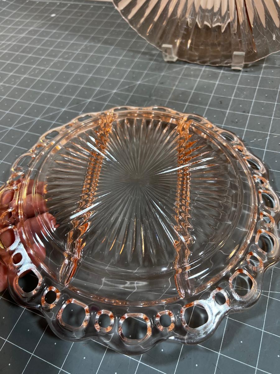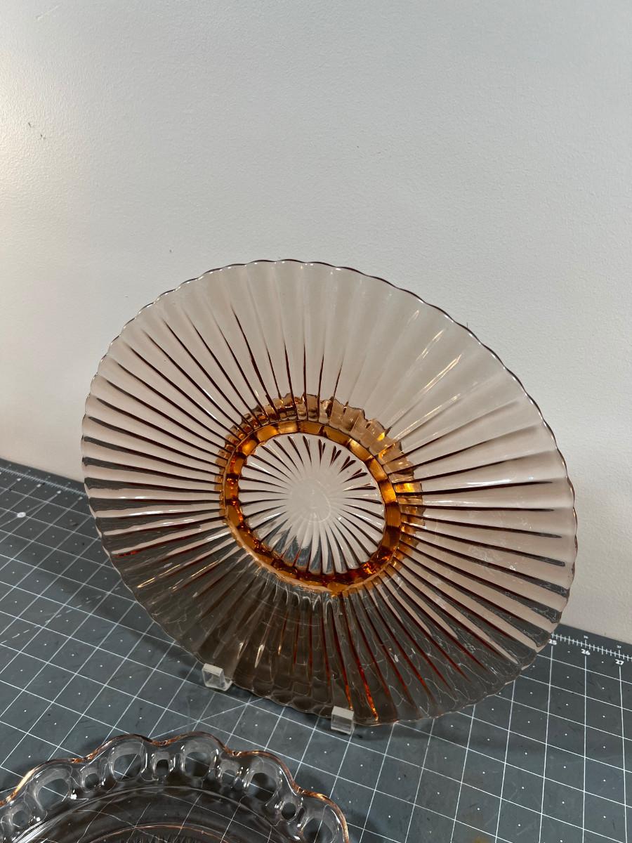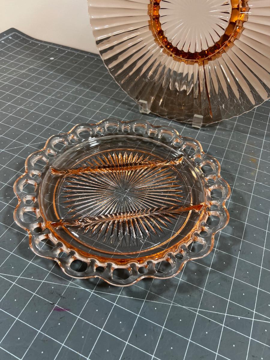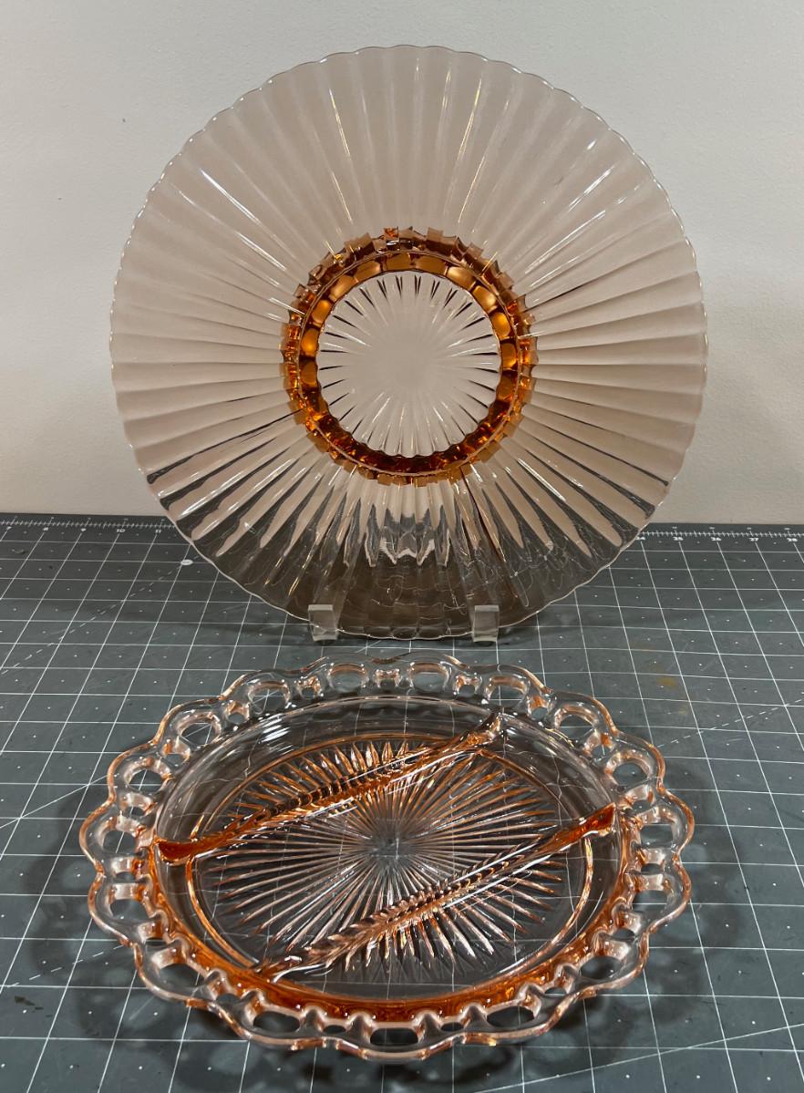 (2) Antique Pink Depression Glass Platter / Plates Serving